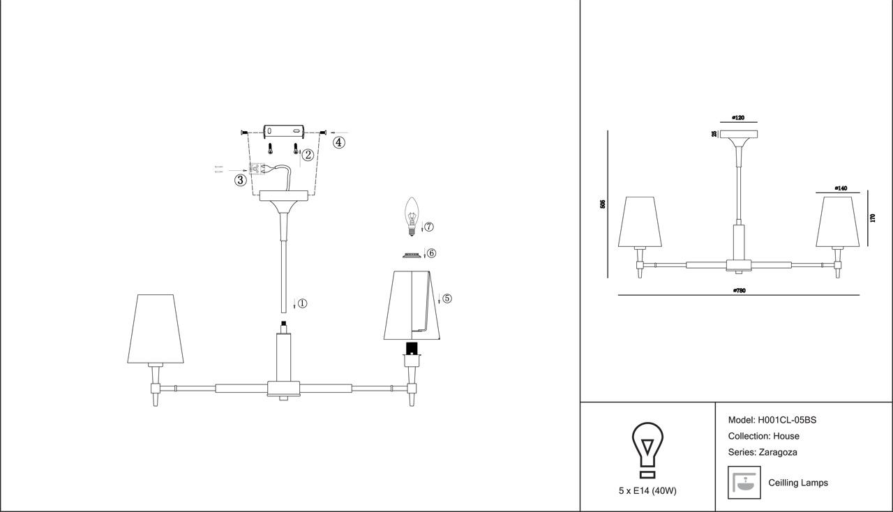 - Количество ламп: 5 шт