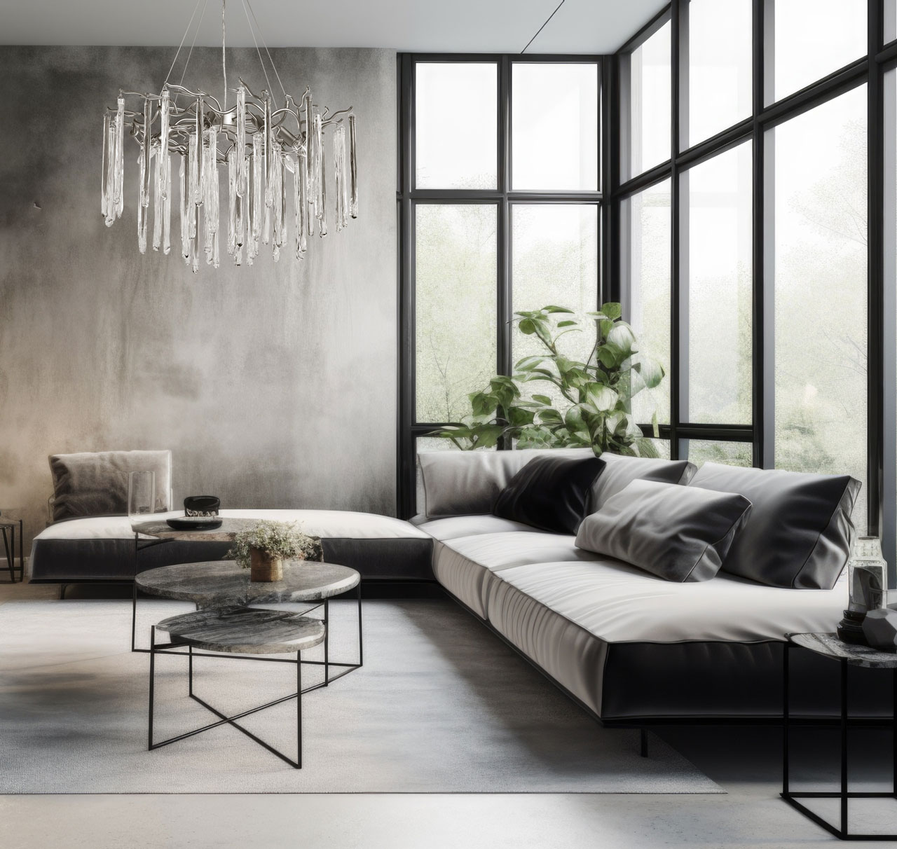 Металлическое основание подвесной люстры окрашено в цвет перламутрового серебра. Люстра декорирована прозрачными стеклянными подвесками и подвесками, окрашенными в белый цвет.