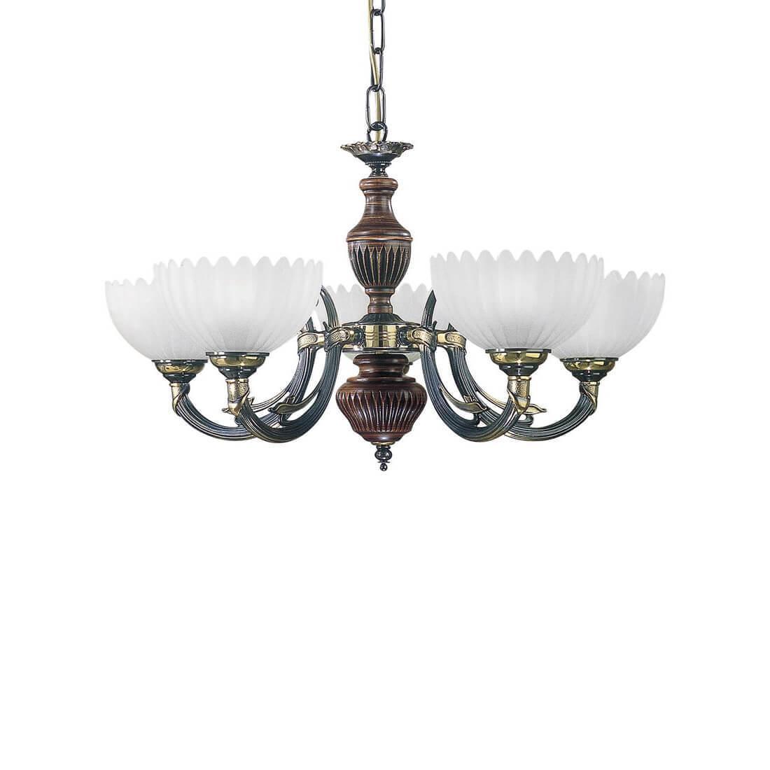 Подвесная люстра Reccagni Angelo L 3610/5 Итальянского производсва – отличный выбор для Вас. Этот светильник Классического стиля хорошо подойдет Для гостиной и придаст помещению мягкий и приятный свет. Плафоны белые из стекла. Арматура бронза из металла. Кол-во ламп - 5шт. Общая мощность 300W