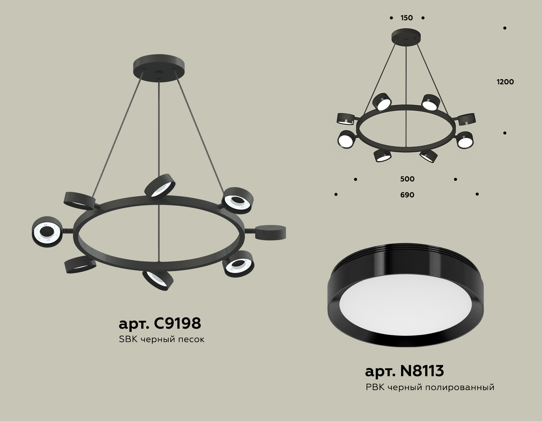 - Цвет плафонов: Черный