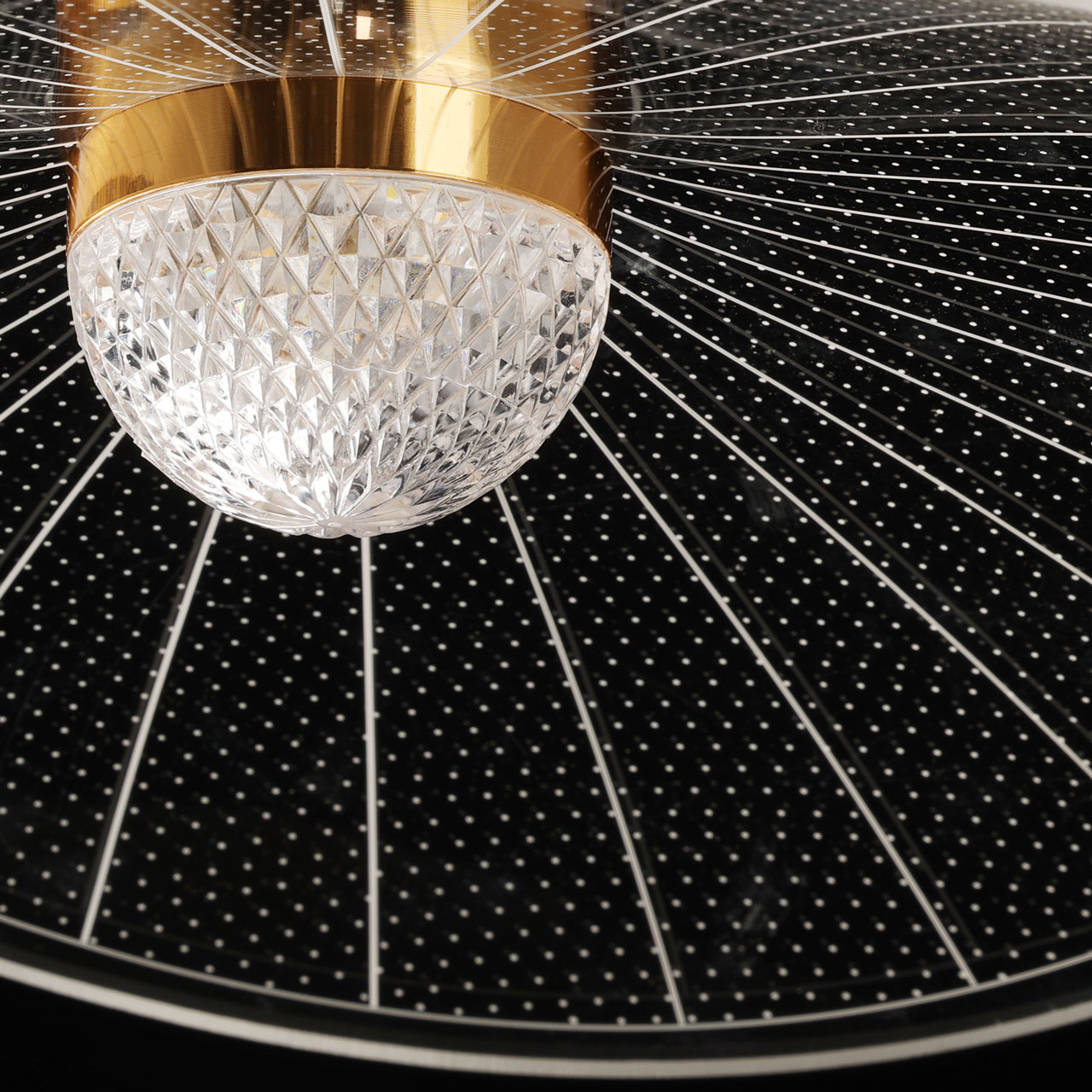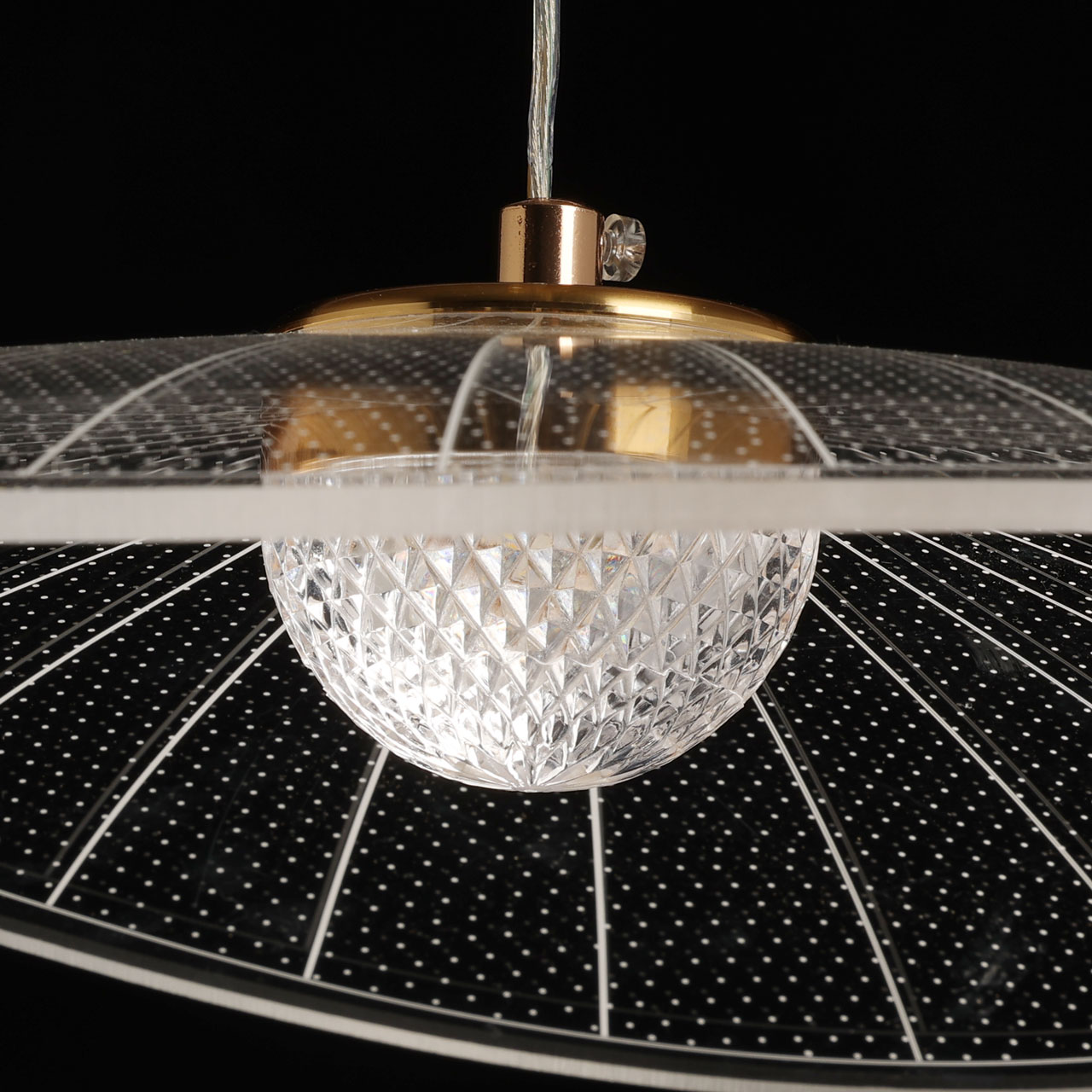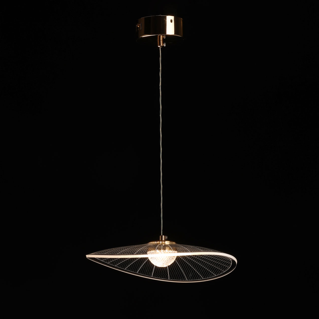 Металлическое основание светильника гальванизировано в цвет золота. Корпус плафона выполнен из сплава алюминия с цинком. Плафон выполнены из прозрачного акрила.