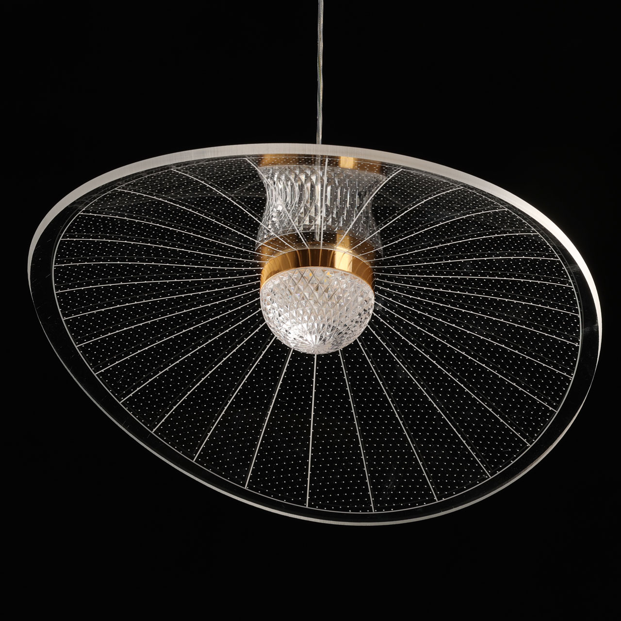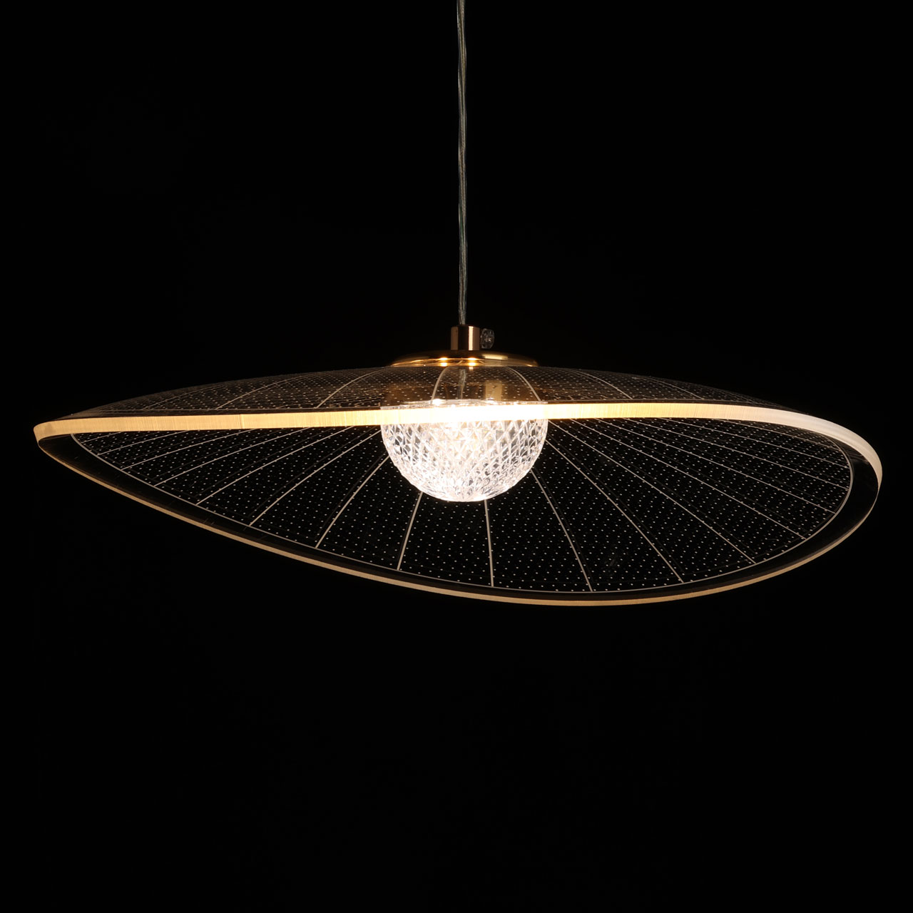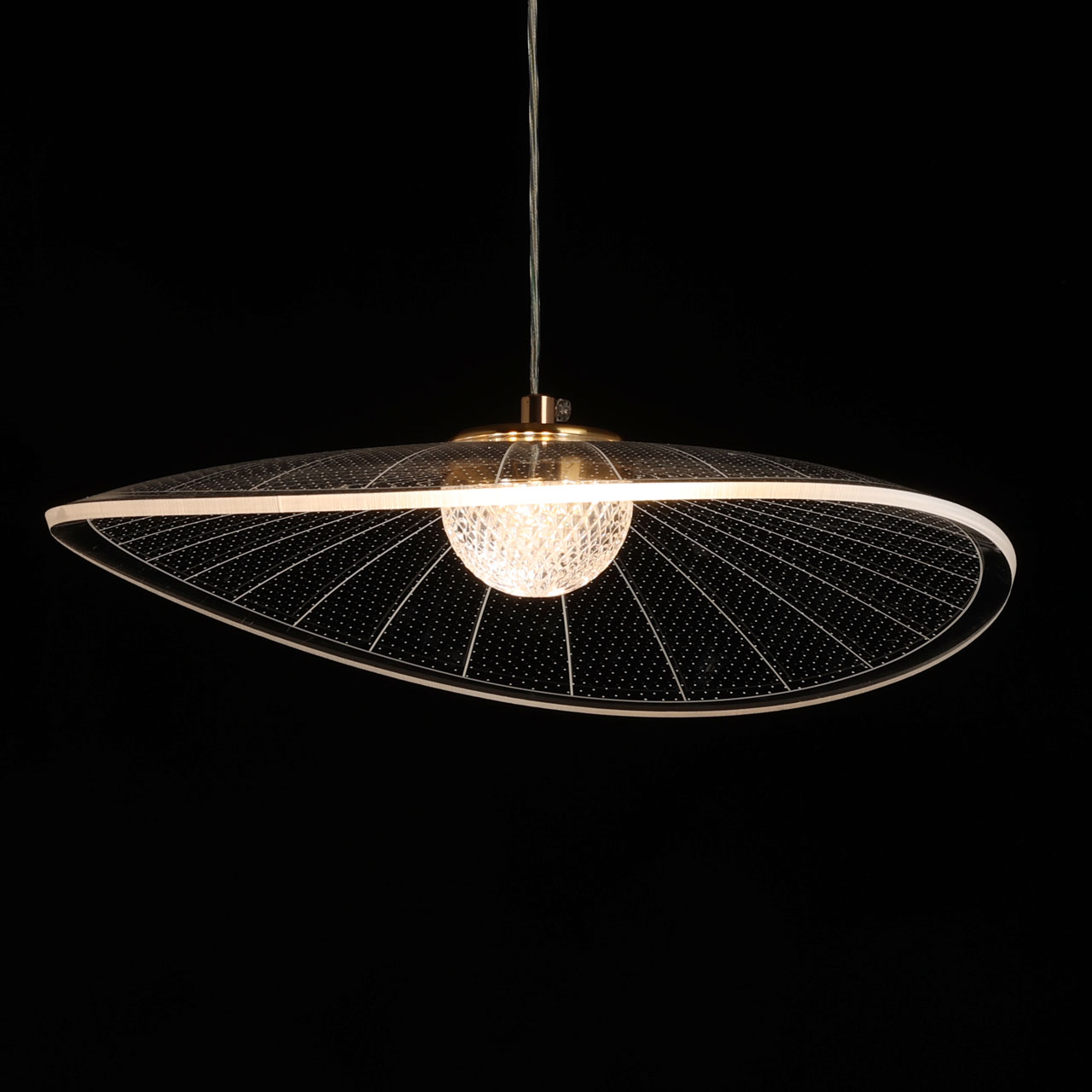 Металлическое основание светильника гальванизировано в цвет золота. Корпус плафона выполнен из сплава алюминия с цинком. Плафон выполнены из прозрачного акрила.