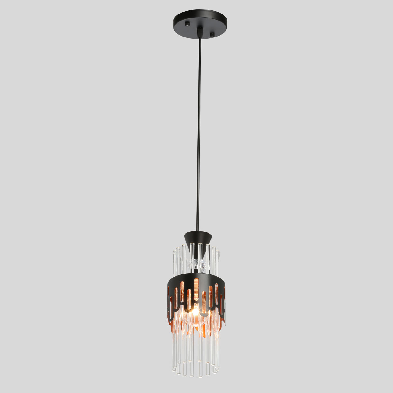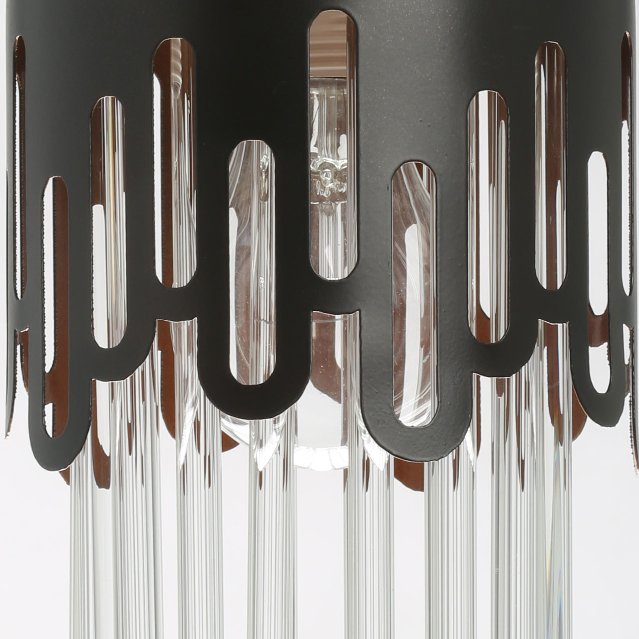 Потолочная люстра De City Соло 112010701 привлекает внимание необычным дизайном, вобравшим в себя элементы классического стиля и современных решений. Черная потолочная чаша эффектно сочетается с металлическим декором, напоминающим кружево. Строгая геометрия подвеса подчеркивается плафоном из прозрачных стеклянных трубочек, образующих уникальную композицию. При этом сам подвес декорирован хрустальным элементом сложной фантазийной огранки, что создает гармоничное сочетание в стиле фьюжн. Яркий контрастный шнур черного цвета добавляет модели нотку индустриальной эстетики.