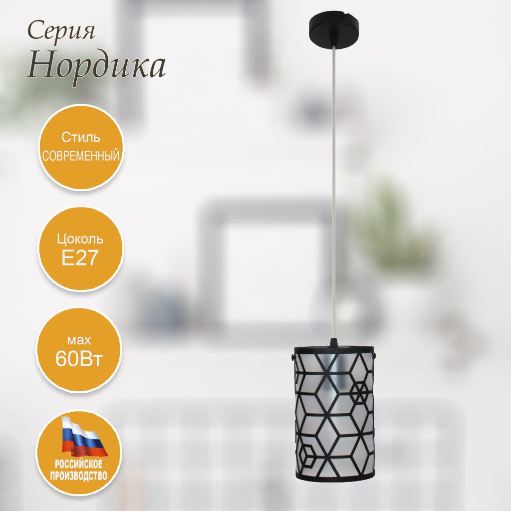 Подвесной светильник из коллекции Нордика - это прекрасное сочетание дизайна и функциональности. Стальной каркас черного цвета и стальной чернй плафон отлично дополнит интерьер любого помещения. Подвесной светильник с плафоном из металла вырезанным с помощью лазарного станка осветит помещение площадью 3.3 кв. м. Рекомендуем использовать для устройства лампы накаливания с цоколем E27 и мощностью 60 W. Прибор произведен с использованием материала: металл, пвх пленка и может использоваться для натяжного потолка. Основным цветом товара является черный . Данную модель 1005405246 спешите купить в интернет-магазине 220svet.