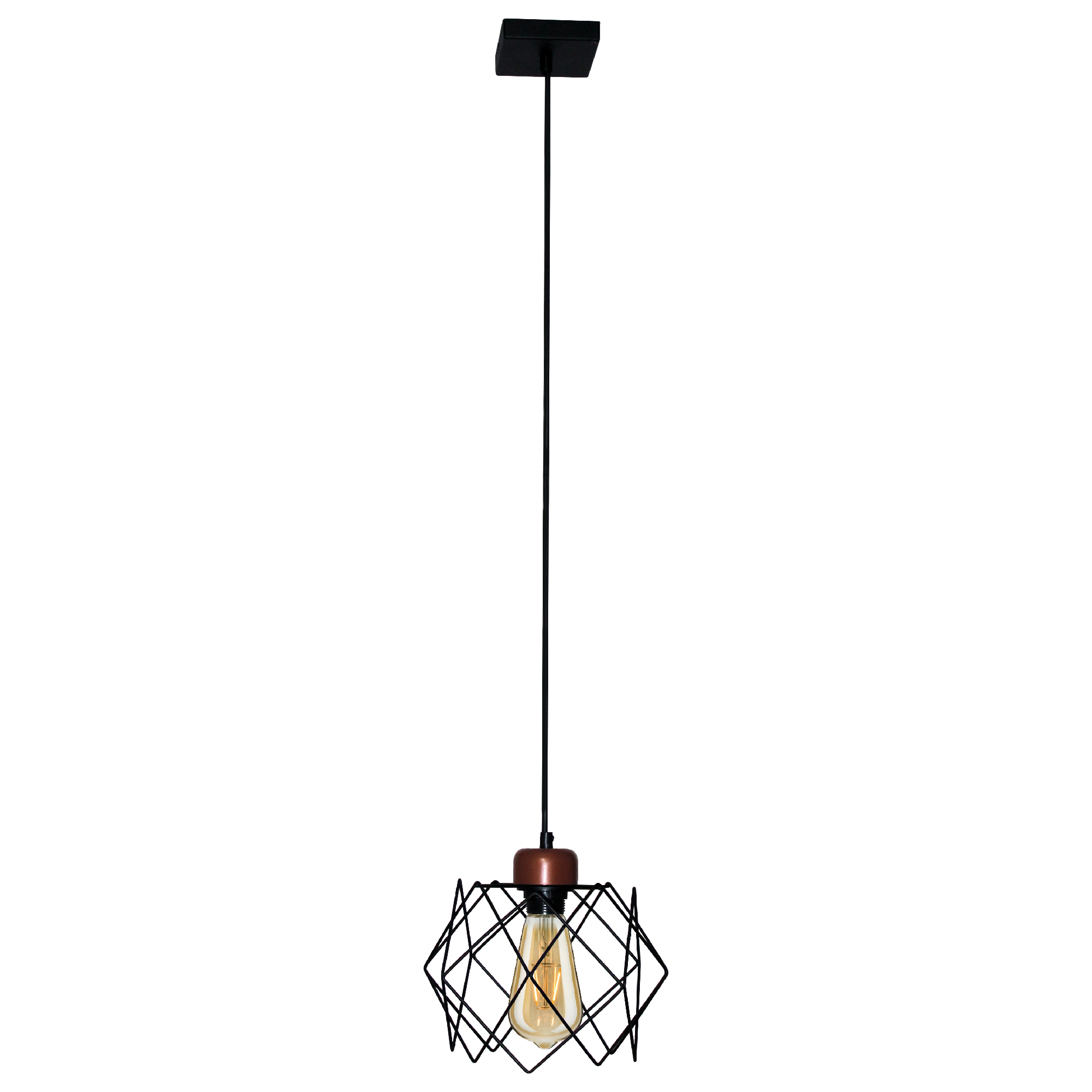 Лаконичный подвесной светильник привлечет внимание любого! Плафон светильника изготовлен из металлических прутьев, а высоту светильника вы с легкостью сможете отрегулировать именно под вашу высоту потолка. Люстра гармонично дополнит интерьер дома, кафе или офиса в стиле Лофт, идеально вписавшись в концепцию дизайна. Для данных светильников могут применяться как стандартные лампы накаливания, светодиодные, энергосберегающие КЛЛ, так и светодиодные филаментные лампы с цоколем Е 27 и мощностью 60Вт. Особое внимание предлагаем обратить на применение в данных светильниках филаментных ламп, их теплый, мягкий свет создаст по настоящему уютную и домашнюю атмосферу. Данную модель 1005404793 можно купить в интернет магазине 220svet.ru