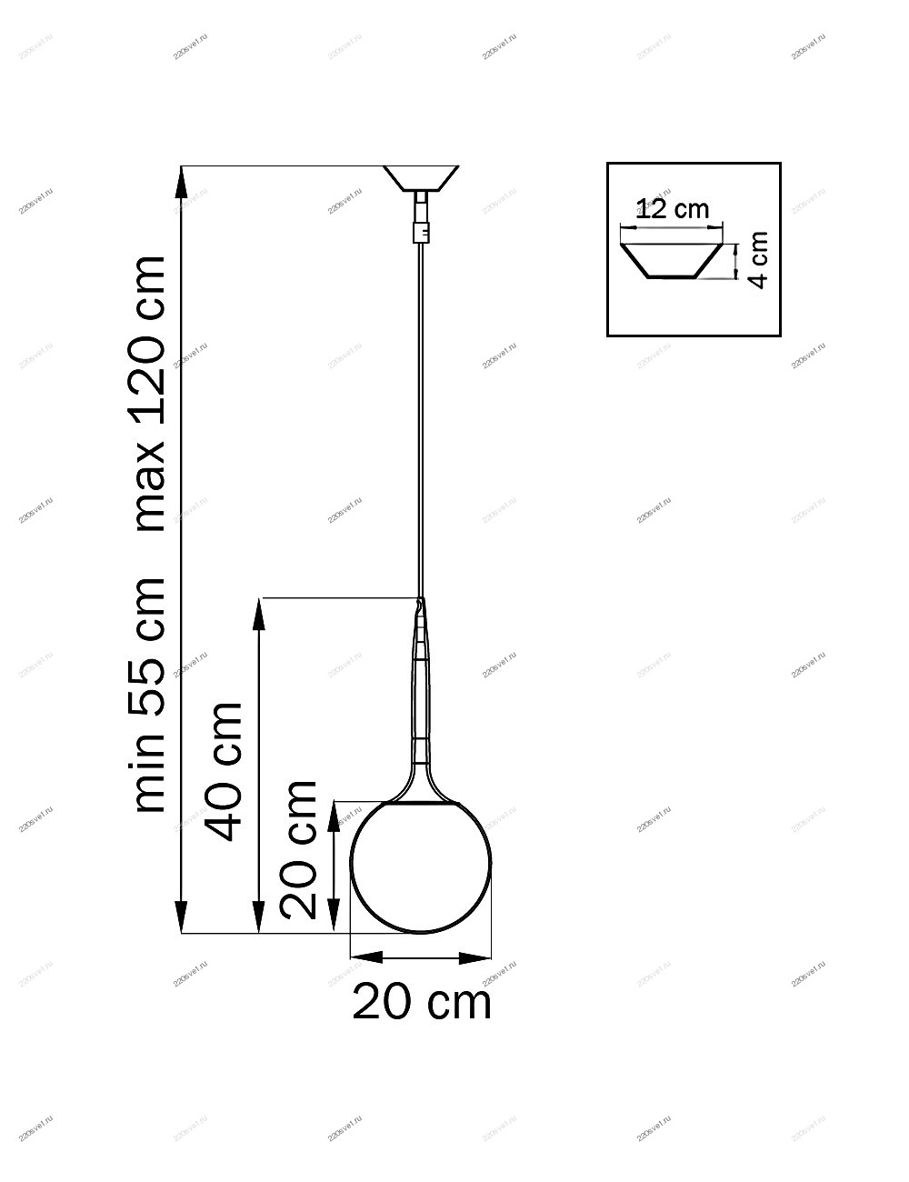 - Форма плафона: Круглый, Шар