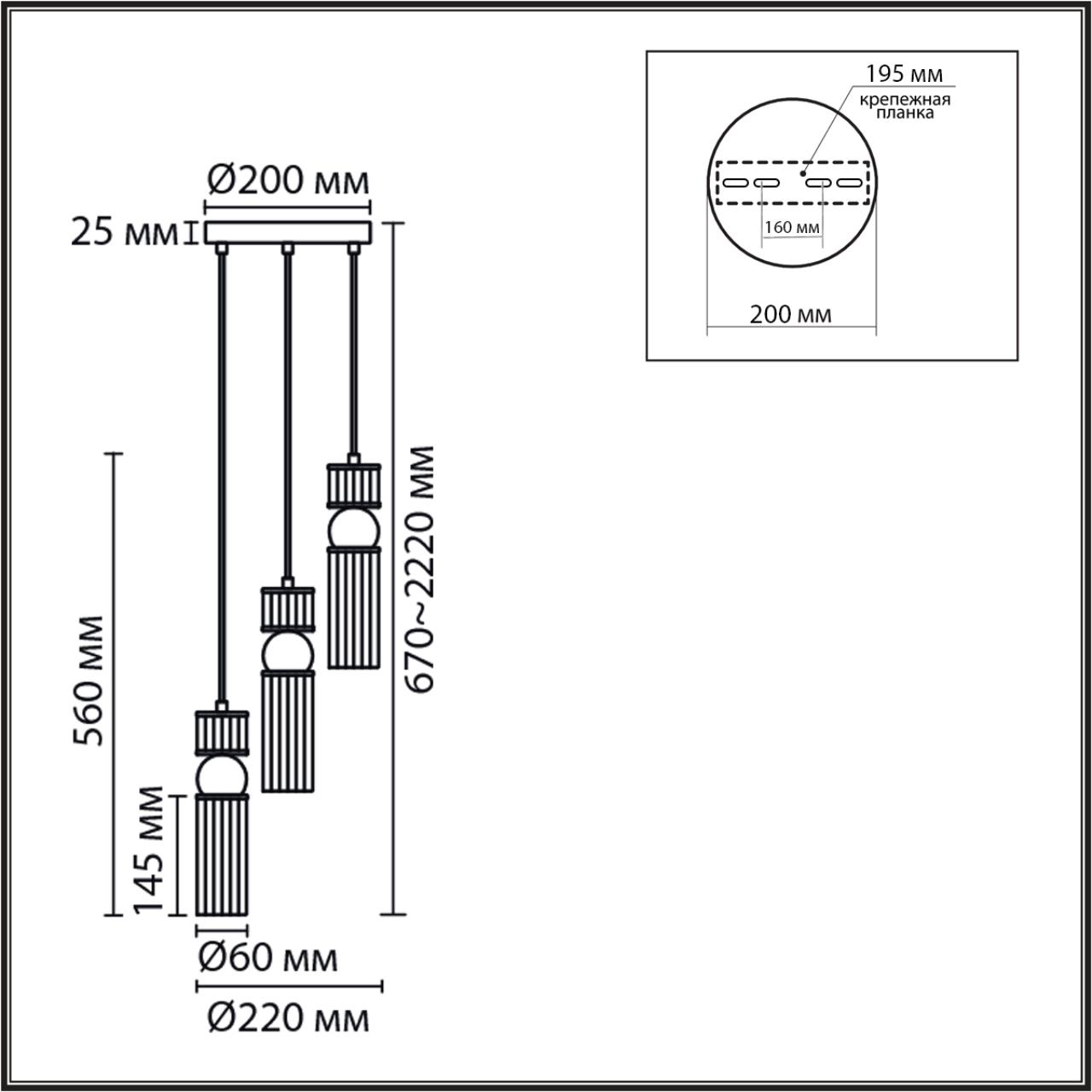 - Высота: 2220 мм (222 см)