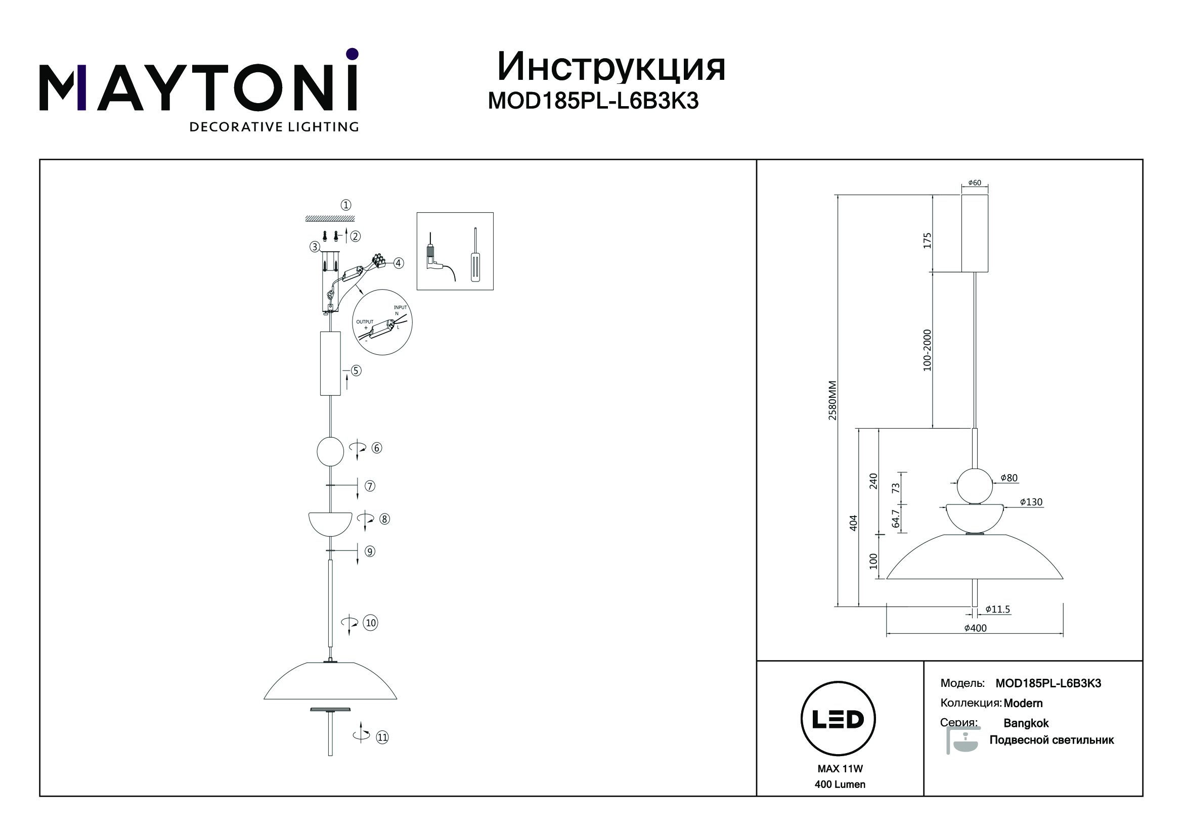 Данную модель MOD185PL-L6B3K3 с быстрой доставкой спешите купить по цене 30 490 ₽ в магазине 220svet.ru