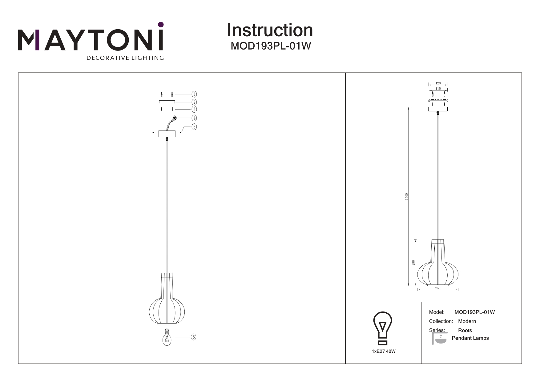 Купить "Подвесной светильник Maytoni Roots MOD193PL-01W"