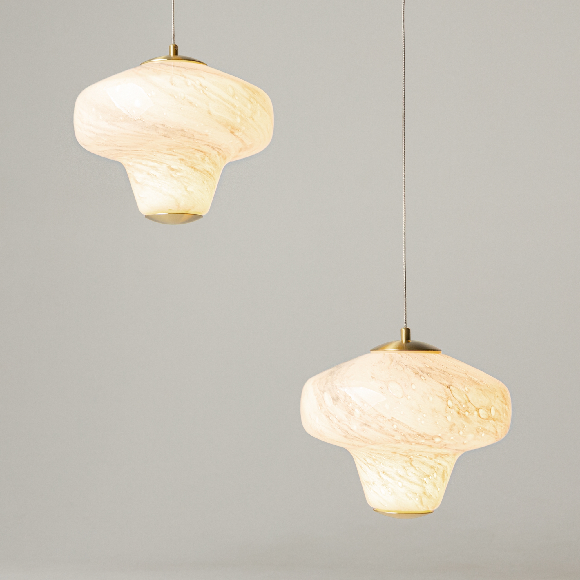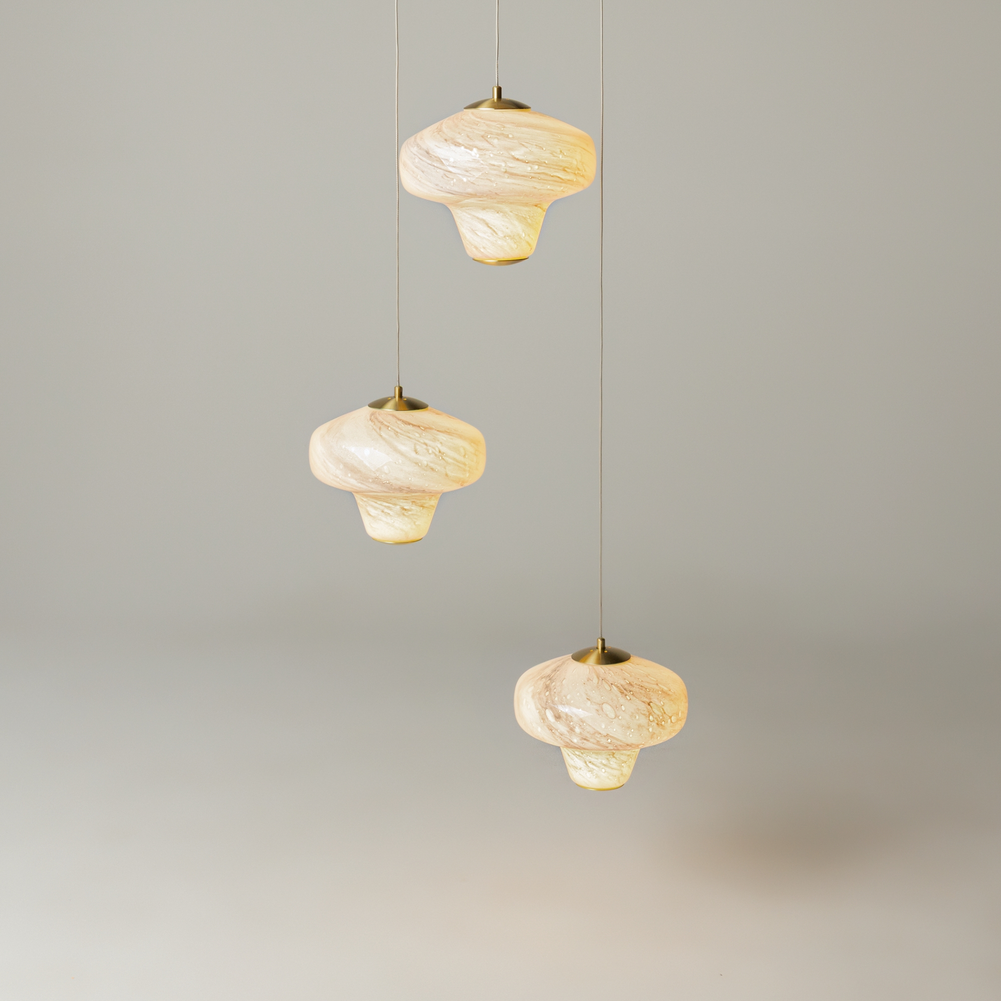 Серия подвесных светильников Sirocco – это история о совместном путешествии двух стихий. Форма стеклянного плафона напоминает вихрь воздушных потоков, а рисунок – танец песчинок. Серия представлена в двух цветах стекла: белом и янтарном, металлическая арматура в цвете сатинированной латуни. Встроенный LED-источник (3000K). Светильники Sirocco можно устанавливать в качестве одиночных акцентов или формировать композиции, так как молочный и оранжевый оттенки гармонично сочетаются друг с другом.
