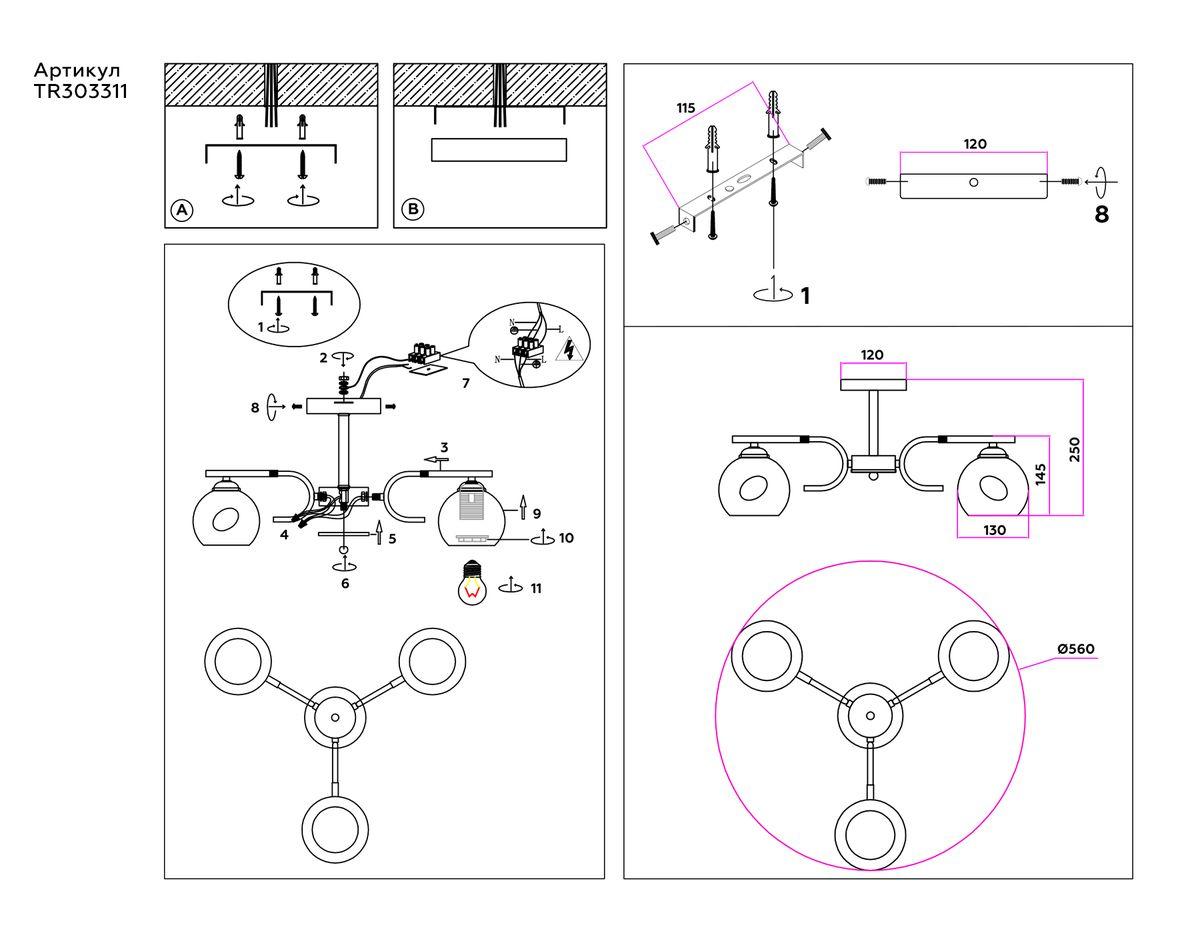 - Количество ламп: 3 шт
