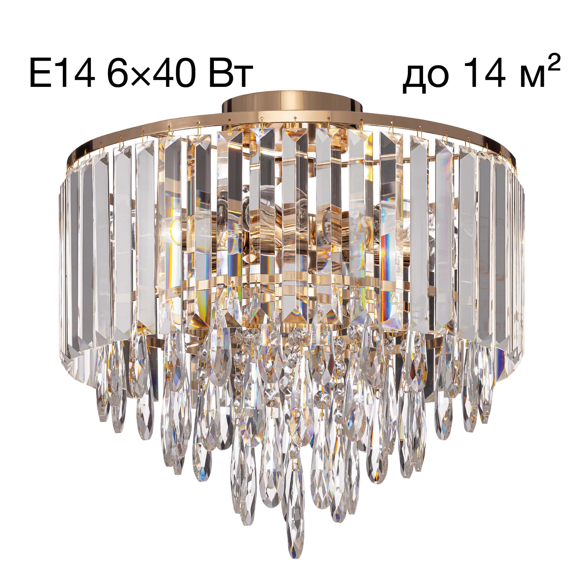 - 6 ламп с цоколем E14 (до 40Вт, лампы приобретаются отдельно)