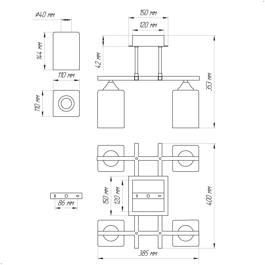 - Количество ламп: 4 шт