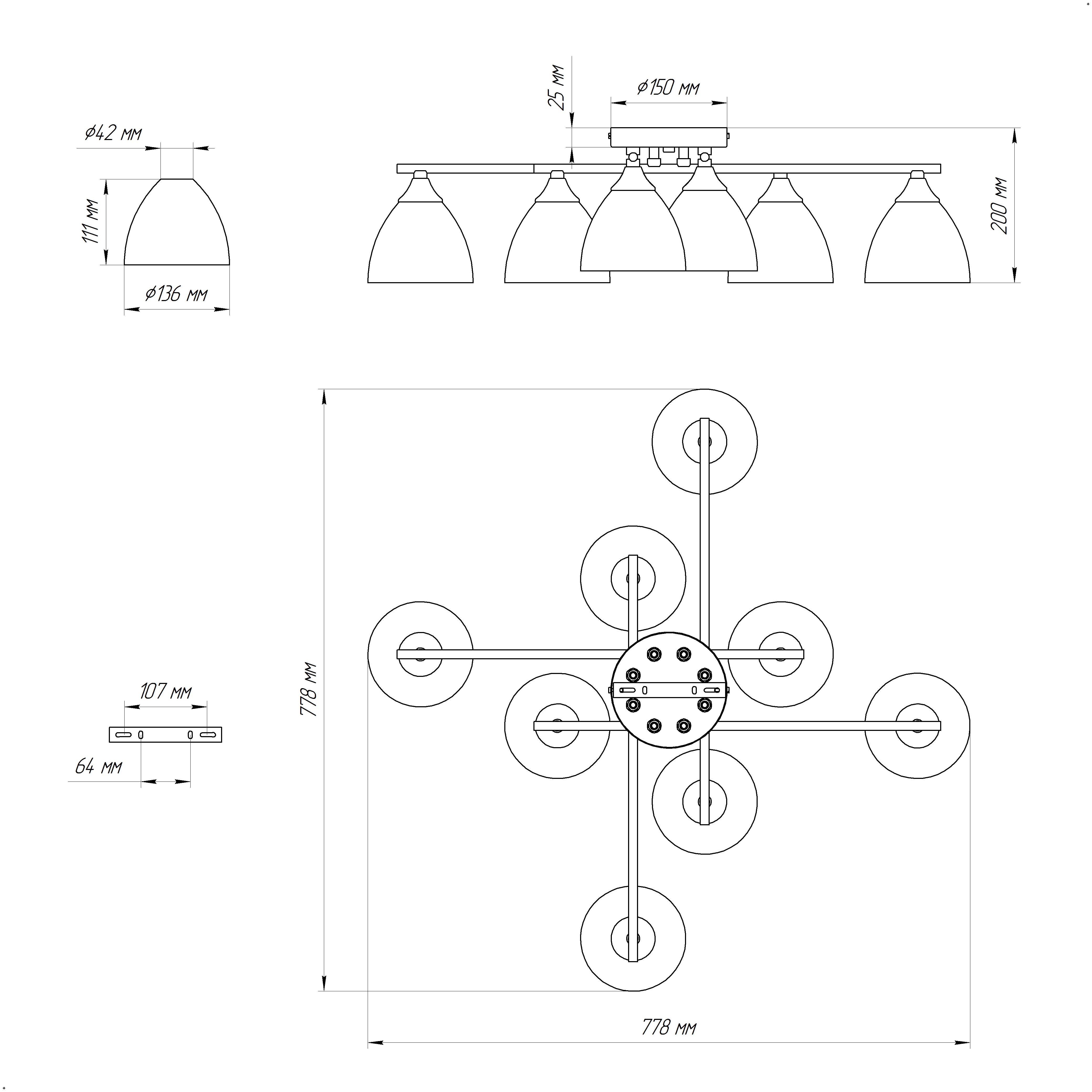 - Количество ламп: 8 шт