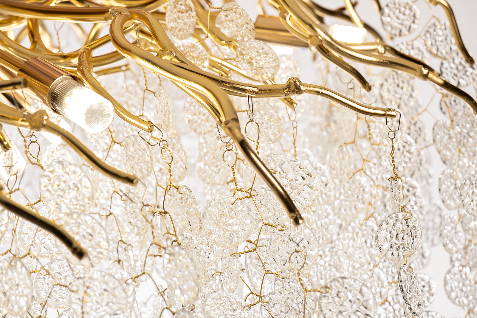 Эта уникальная потолочная люстра станет центральным элементом вашего интерьера. Основание в виде золотистых ветвей дополняется изысканными подвесками, выполненными в виде прозрачных лепестков. Идеальна для просторных помещений, она добавит роскоши и утонченности любому интерьеру. Люстра обеспечивает равномерное освещение и станет актуальным дополнением спальни, гостиной или столовой комнаты в современном стиле.