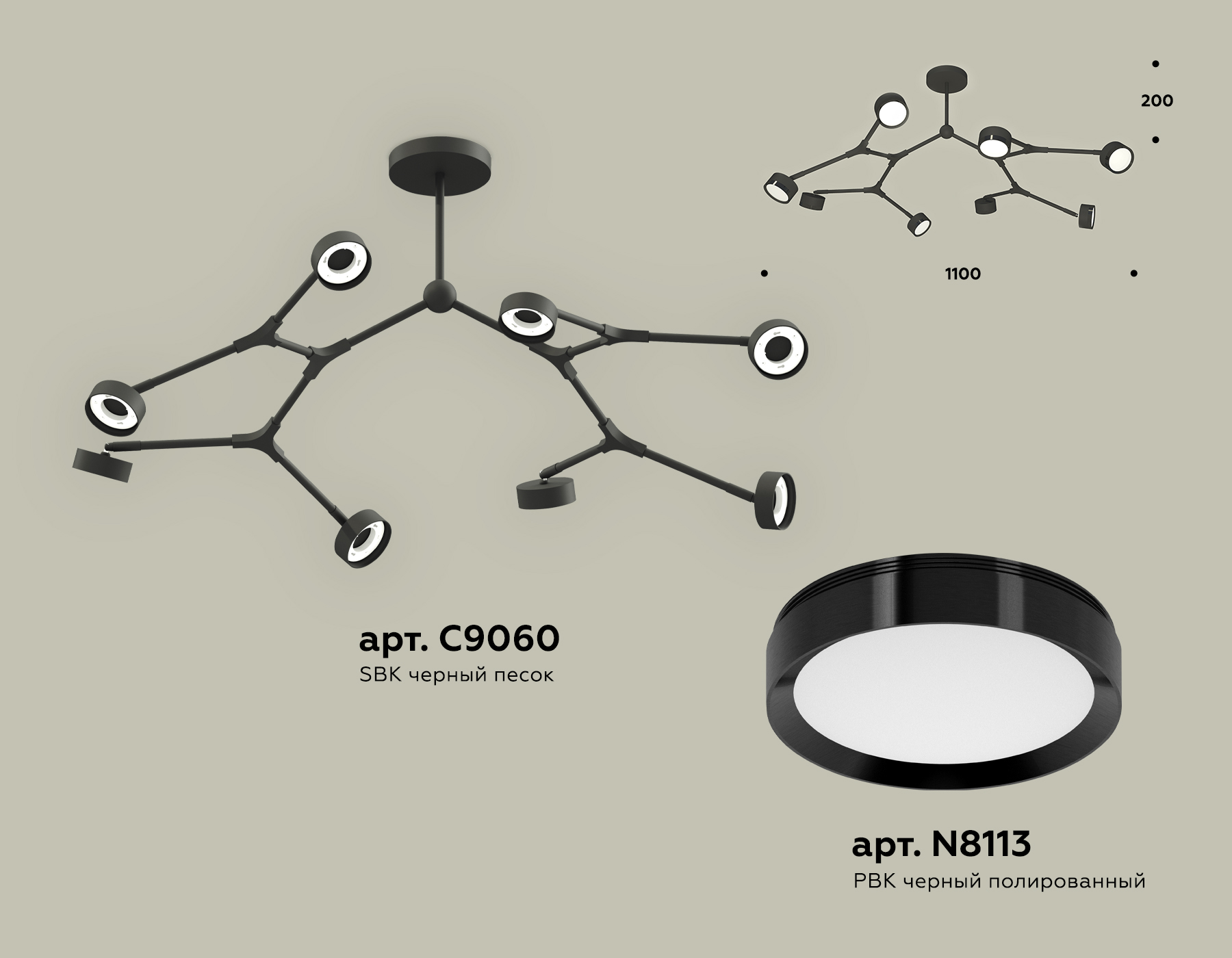 - Цвет плафонов: Черный