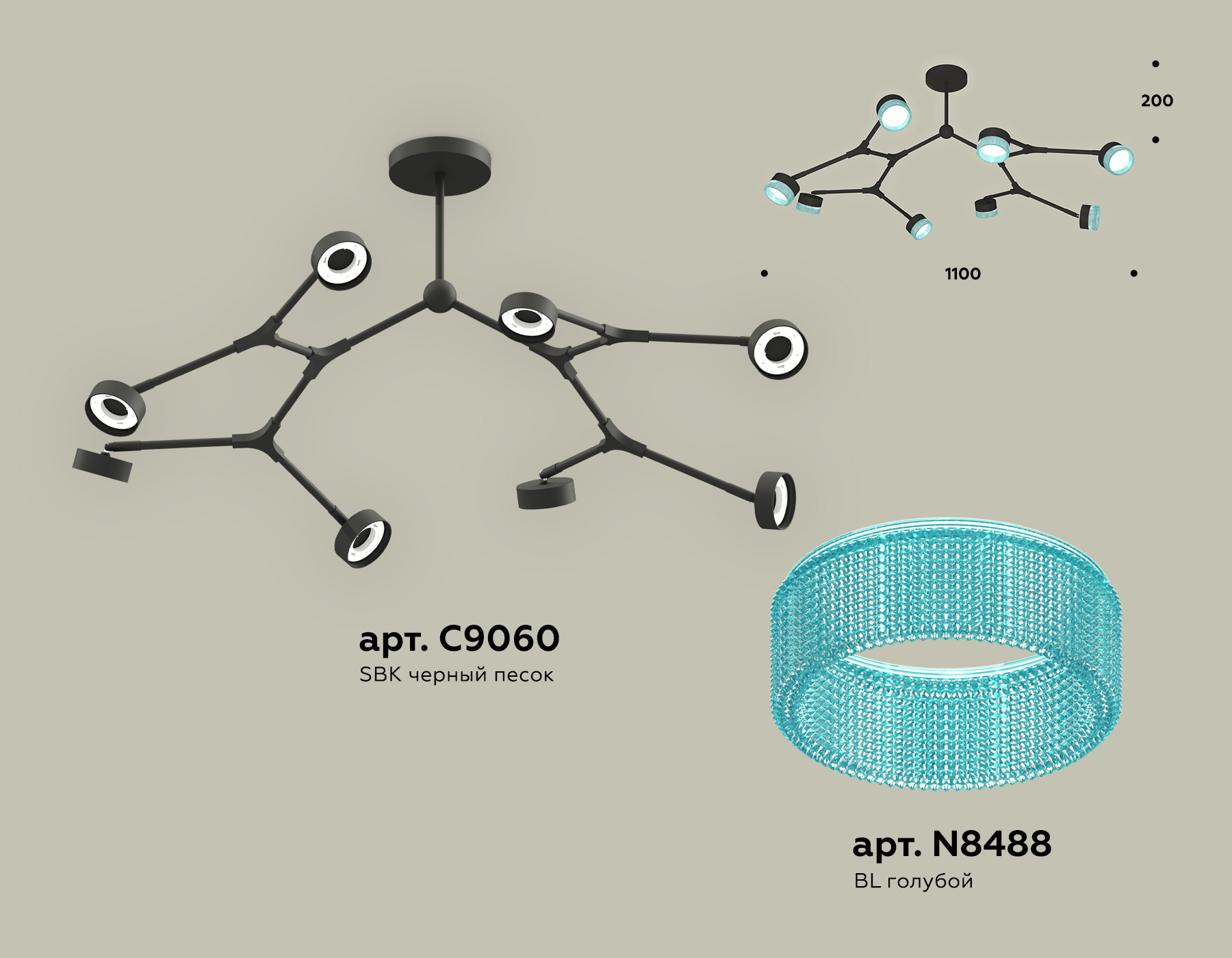 - Цвет плафонов: Голубой