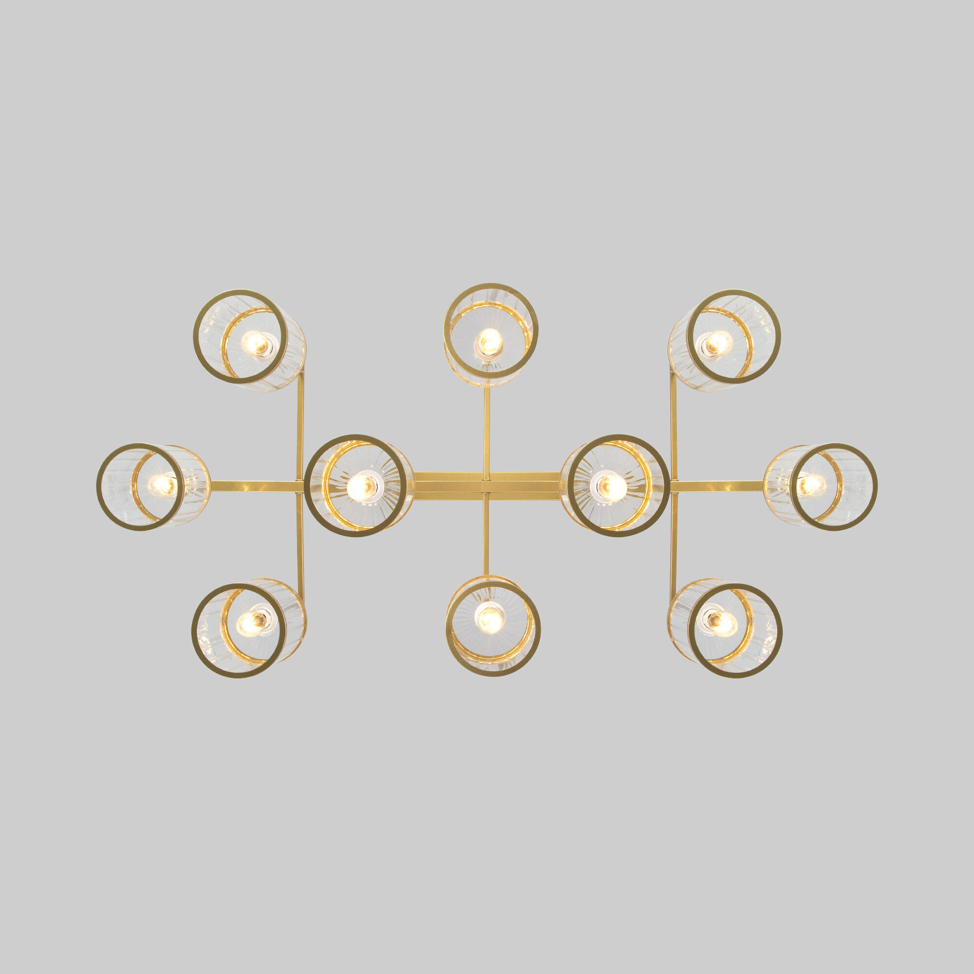 Люстра Inari в благородном цвете золота создана, чтобы стать центром визуального притяжения в современном интерьере зала, спальни или кухни. Изящный, но в то же время монументальный дизайн, который хочется рассматривать, обращая внимание на детали. Десять фактурных стеклянных плафонов мягко рассеивают свет, наполняя им максимум пространства за счет открытой конструкции. В потолочном светильнике используются сменные лампы с цоколем E14.