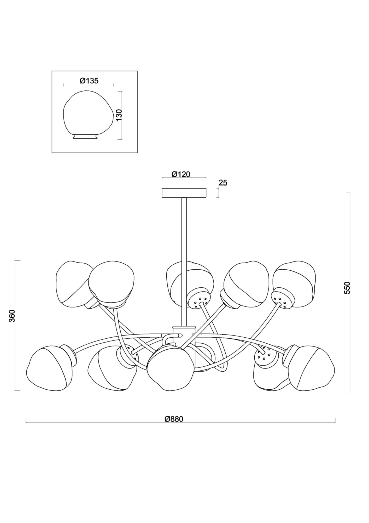 - Диаметр плафона (абажура): 135