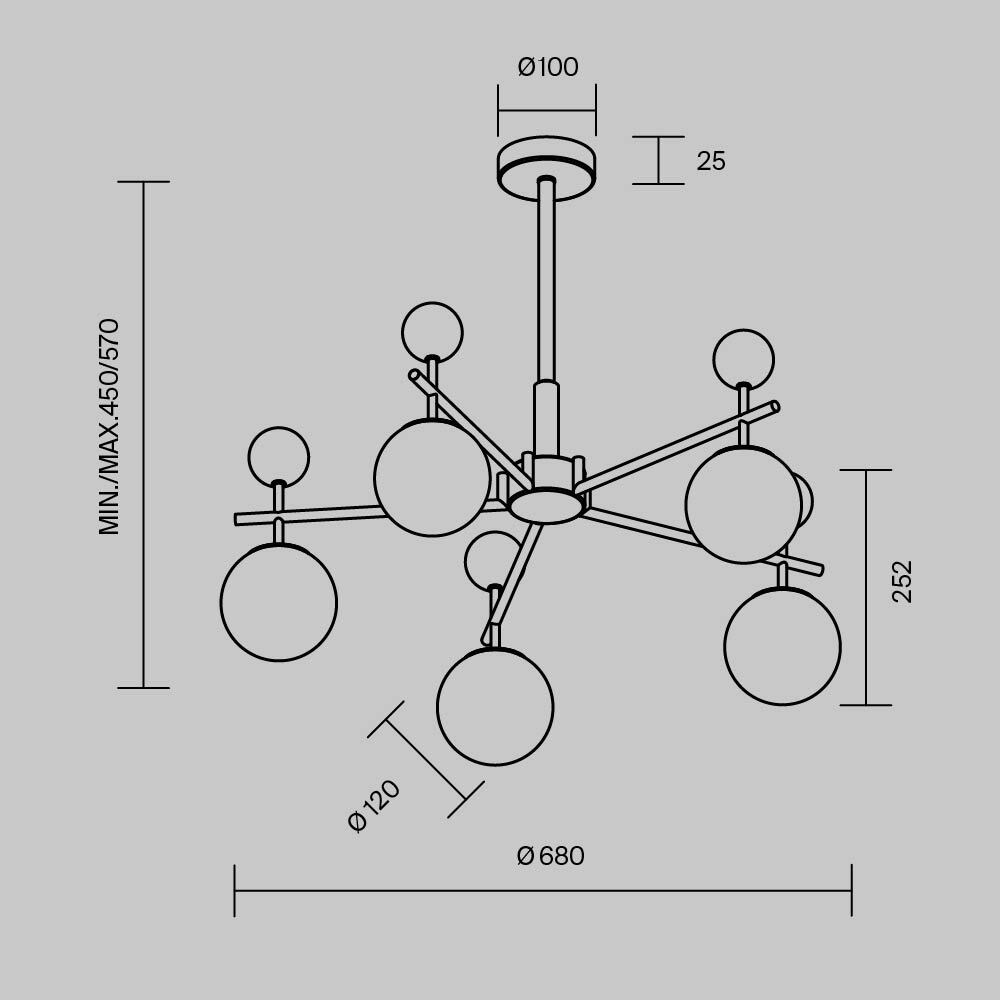 Серия Museo — это классика, переплетенная с современными тенденциями. В серии представлены подвесные светильники на 5 и 7 плафонов, а также настенный светильник (бра). Декоративные шары из натурального черного мрамора. Стеклянные плафоны из глянцевого белого стекла. Металлическая арматура светильников в цвете сатинированной латуни. Высота люстры регулируется разборной штангой. Сменный источник света с цоколем G9. Акцентная и яркая серия Museo создает эффектный визуальный контраст в интерьере.