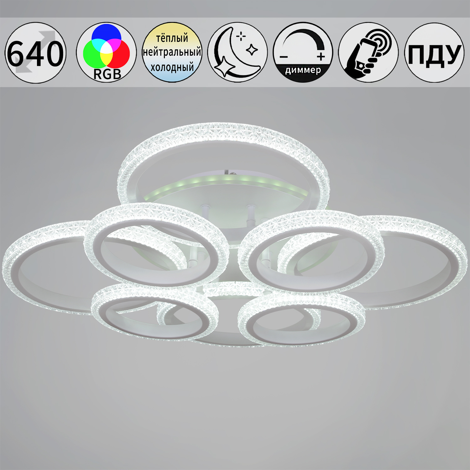 - Технические особенности: С пультом ДУ, С диммером, Управление с телефона