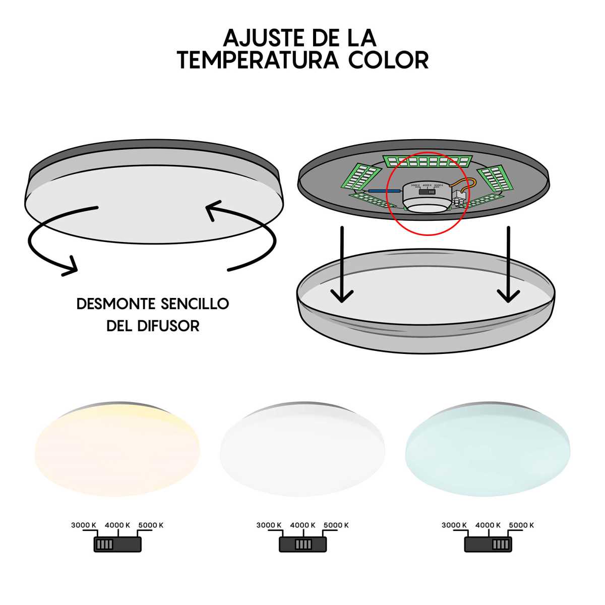 3000-5000K?Цветовая температура – это характеристика интенсивности излучения источника света. Ниже пример как меняется тип света в зависимости от цветовой температуры.