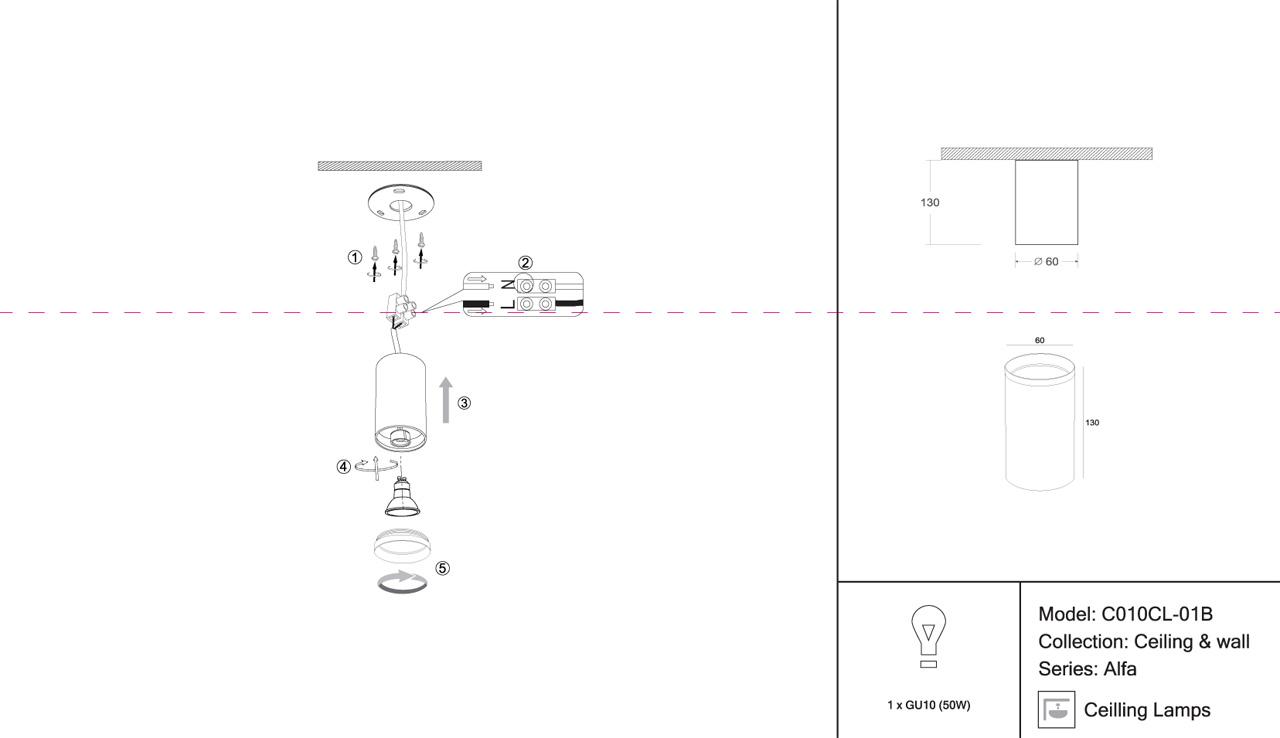 - Направление плафонов: Плафон вниз