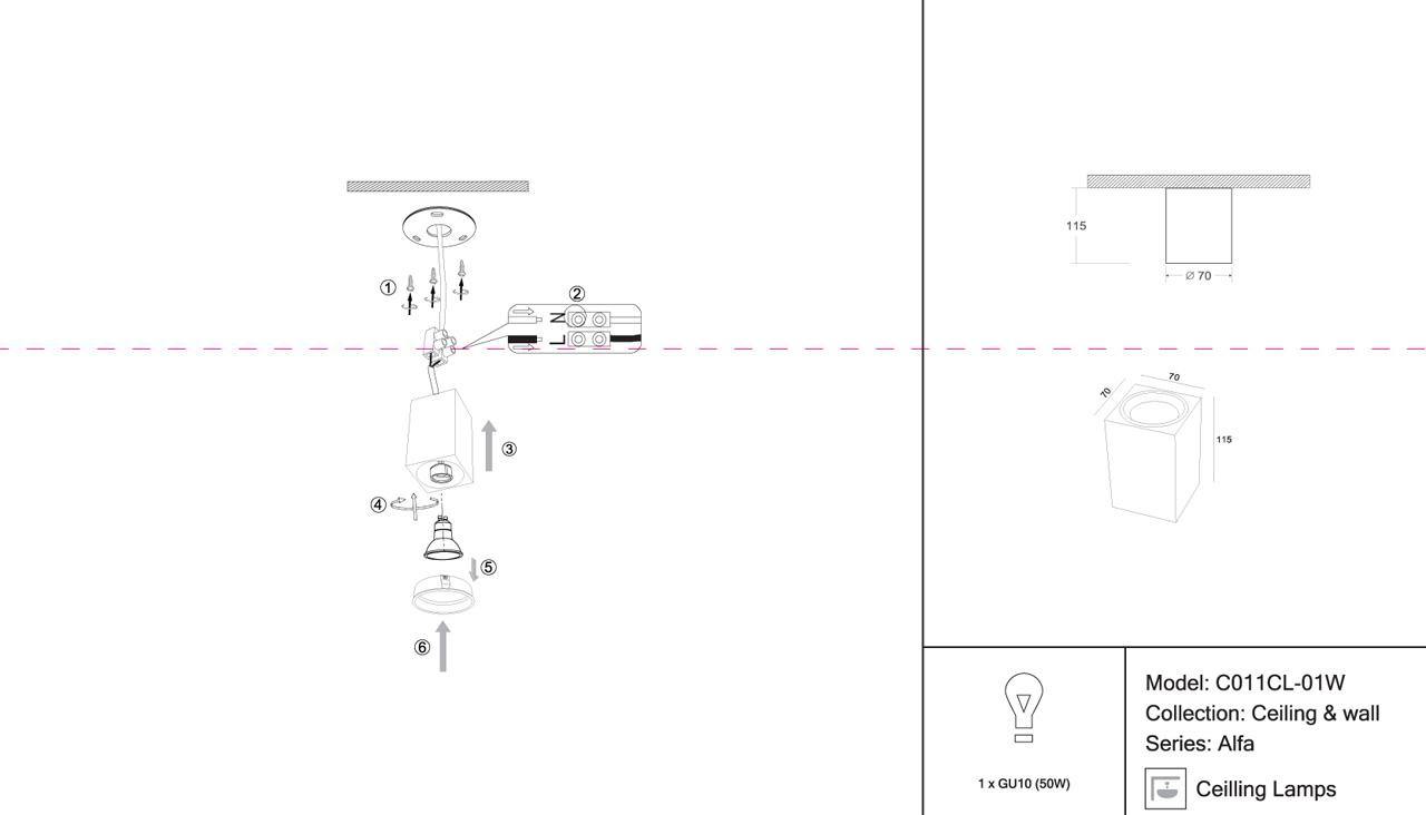 - Место установки: на потолок