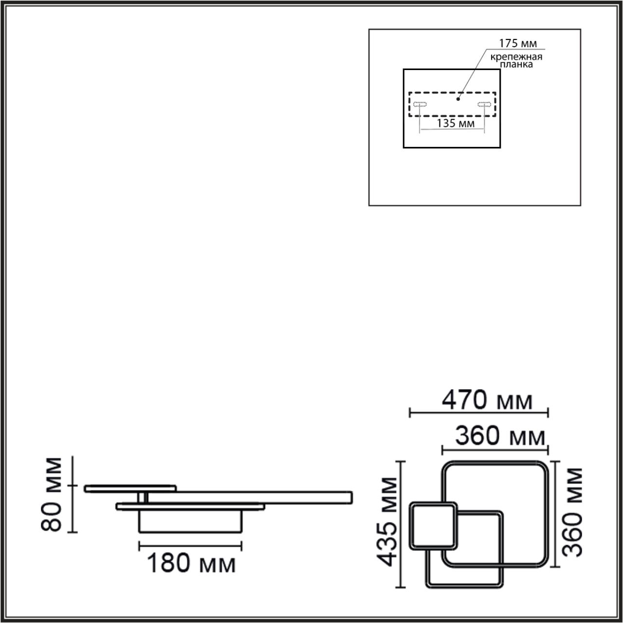- Форма плафона: Квадратный