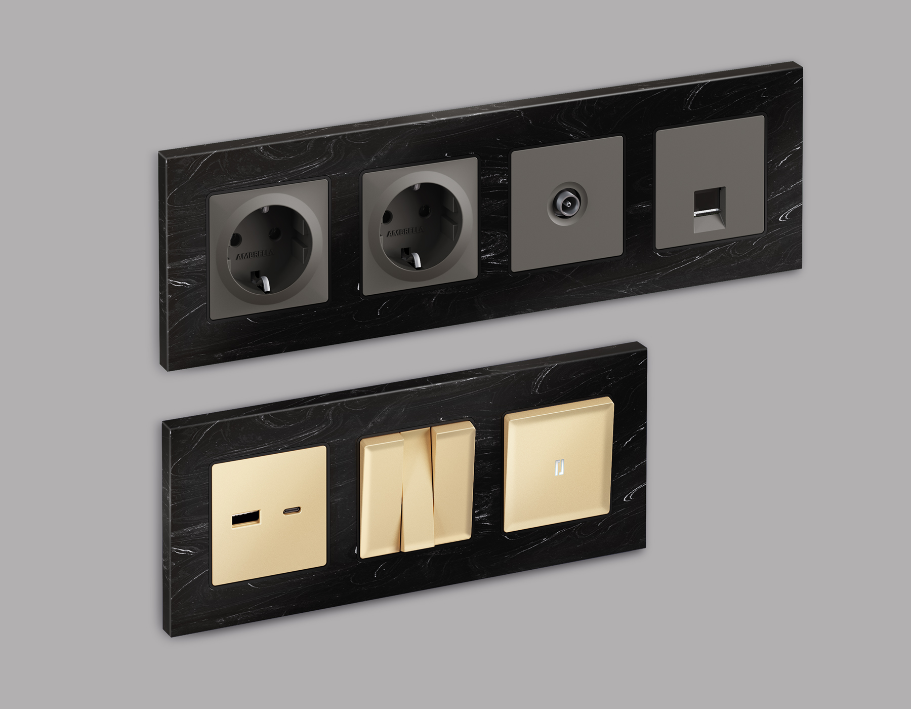 Многогранный ассортимент Ambrella Volt включает в себя механизмы, лицевые панели и рамки, а также комплекты, доступные в различных цветовых решениях. Продукция представлена в модульном исполнении, что позволяет гибко настраивать внешнийвид и функциональность. Вам будет легко заменить лицевую панель, рамку или механизм, найдя идеальное сочетание цветов.
