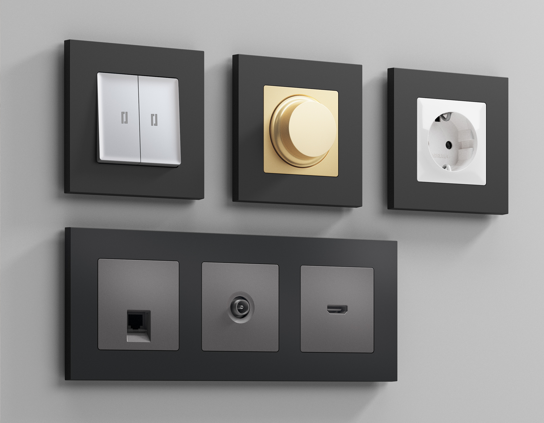 Многогранный ассортимент Ambrella Volt включает в себя механизмы, лицевые панели и рамки, а также комплекты, доступные в различных цветовых решениях. Продукция представлена в модульном исполнении, что позволяет гибко настраивать внешнийвид и функциональность. Вам будет легко заменить лицевую панель, рамку или механизм, найдя идеальное сочетание цветов.