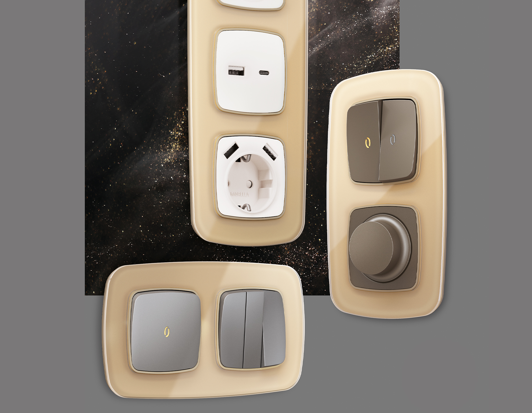Многогранный ассортимент Ambrella Volt включает в себя механизмы, лицевые панели и рамки, а также комплекты, доступные в различных цветовых решениях. Продукция представлена в модульном исполнении, что позволяет гибко настраивать внешнийвид и функциональность. Вам будет легко заменить лицевую панель, рамку или механизм, найдя идеальное сочетание цветов.