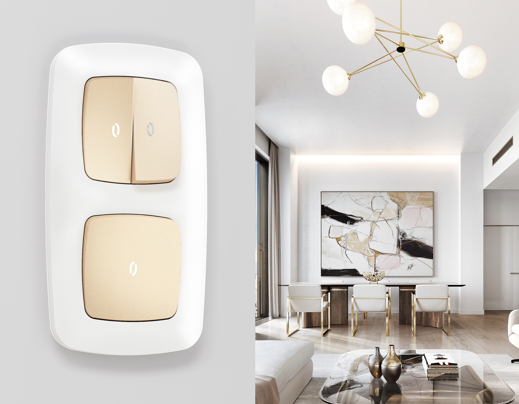 Многогранный ассортимент Ambrella Volt включает в себя механизмы, лицевые панели и рамки, а также комплекты, доступные в различных цветовых решениях. Продукция представлена в модульном исполнении, что позволяет гибко настраивать внешнийвид и функциональность. Вам будет легко заменить лицевую панель, рамку или механизм, найдя идеальное сочетание цветов.