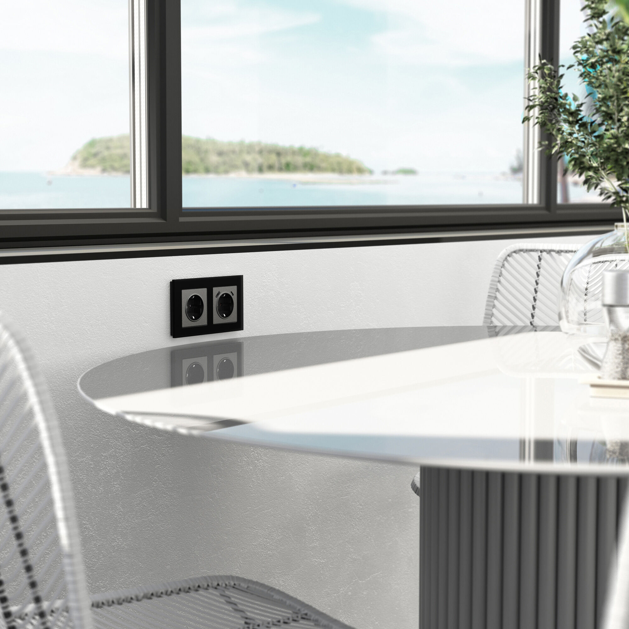 Рамка Senso soft-touch в черном цвете выполнена из закаленного стекла. Идеально отшлифованные грани, подчеркнутые прямой фаской, создают необычайную игру света и придают дополнительный объем стеклу.