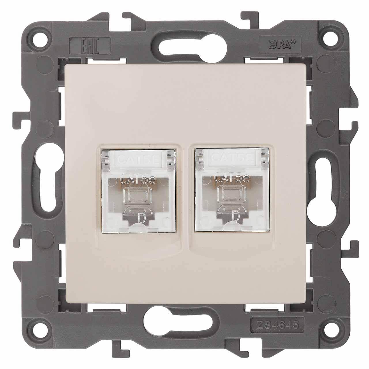 Купить "Розетка информационная 2XRJ45 ЭРА 14-3108-02 Б0034309"