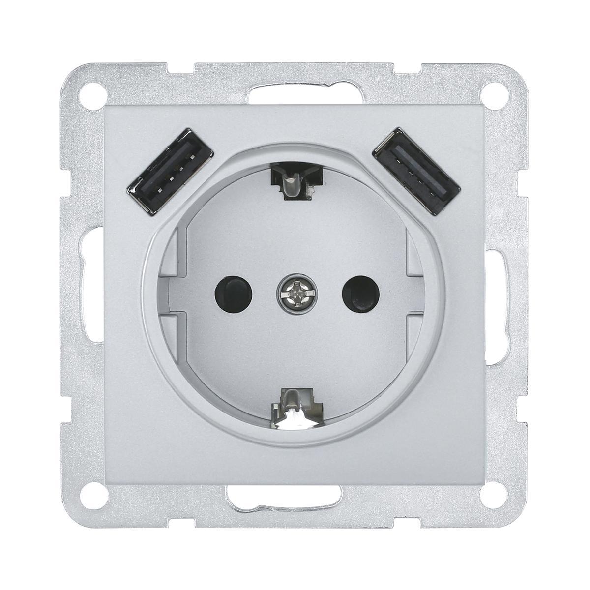 Купить "Розетка LK Studio с з/к + 2хUSB разъема, 2А (серебристый металлик) LK60 868003-1"