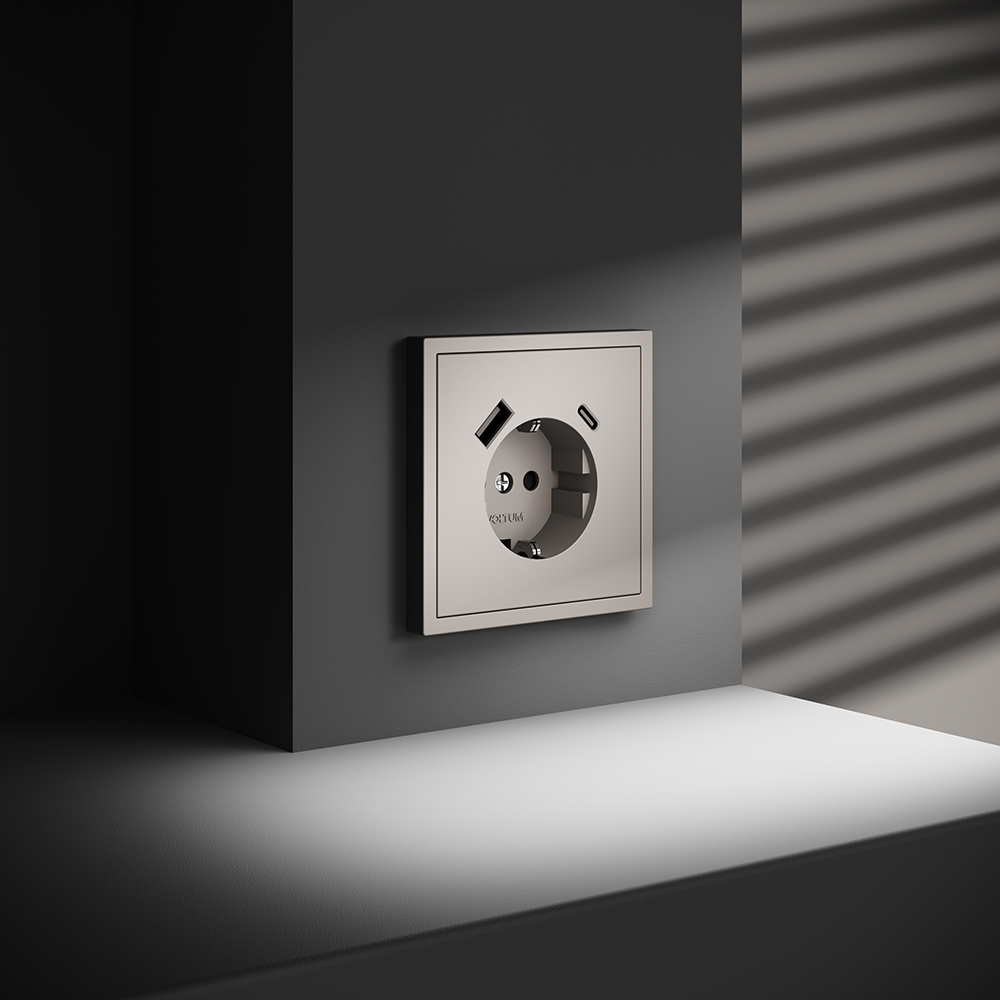 Купить "Розетка встраиваемая с заземлением и защитными шторками, 16А, с USB, A+С Voltum S70 VLS040503 (кашемир)"