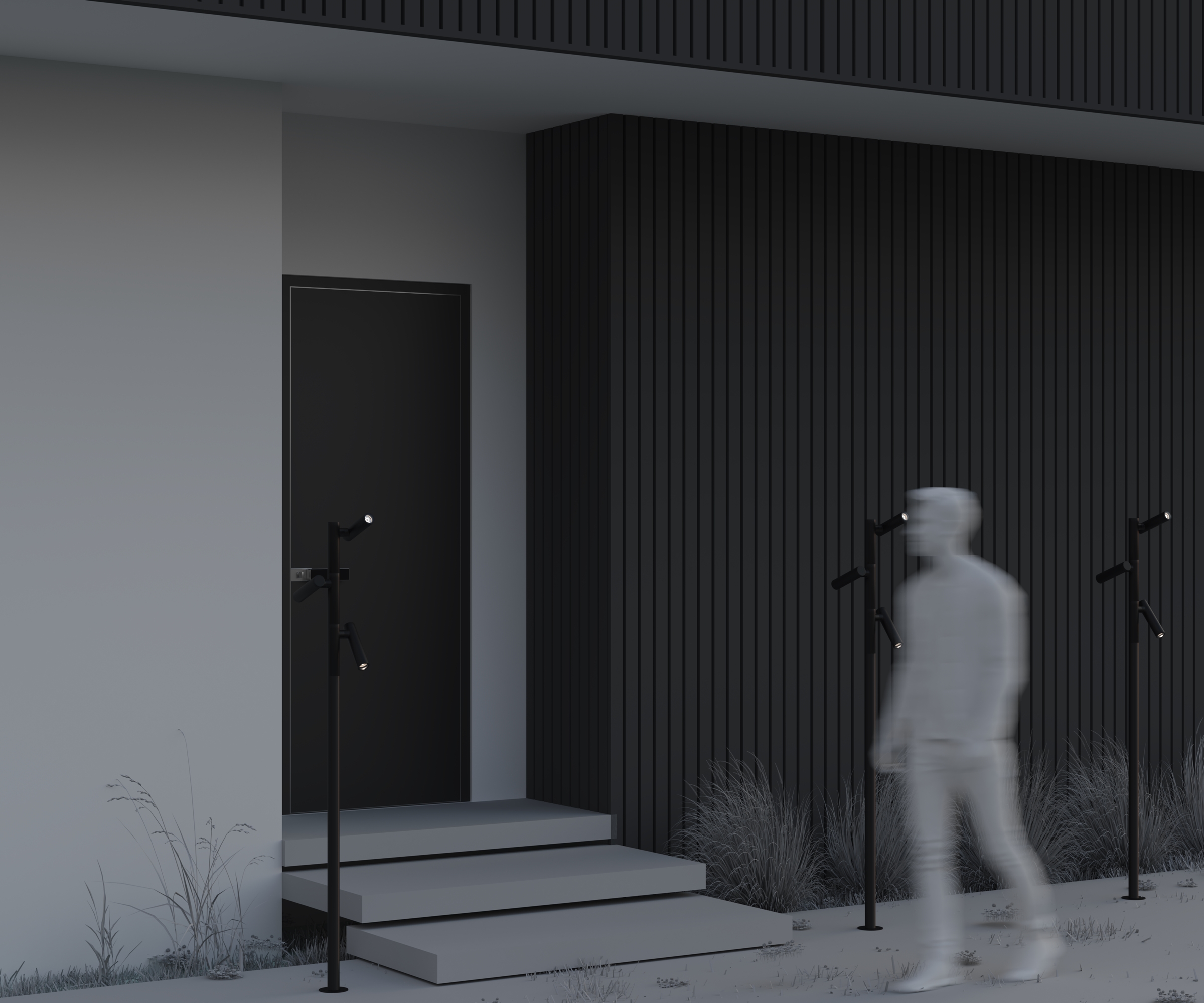 Материал арматуры - алюминий, цвет - черный. LED-источник света с цветовой температурой 3000К. Три размера с разной мощностью - 10, 20 и 30Вт. Повышенная степень защиты от пыли и влаги IP65. Ландшафтный светильник оснащен спотами с поворотным механизмом для создания акцентов светом.
