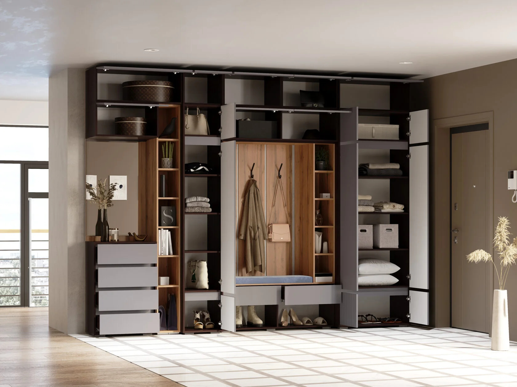 Шкаф двухстворчатый Woodville Роут венге / графит софт 593729 в Томск