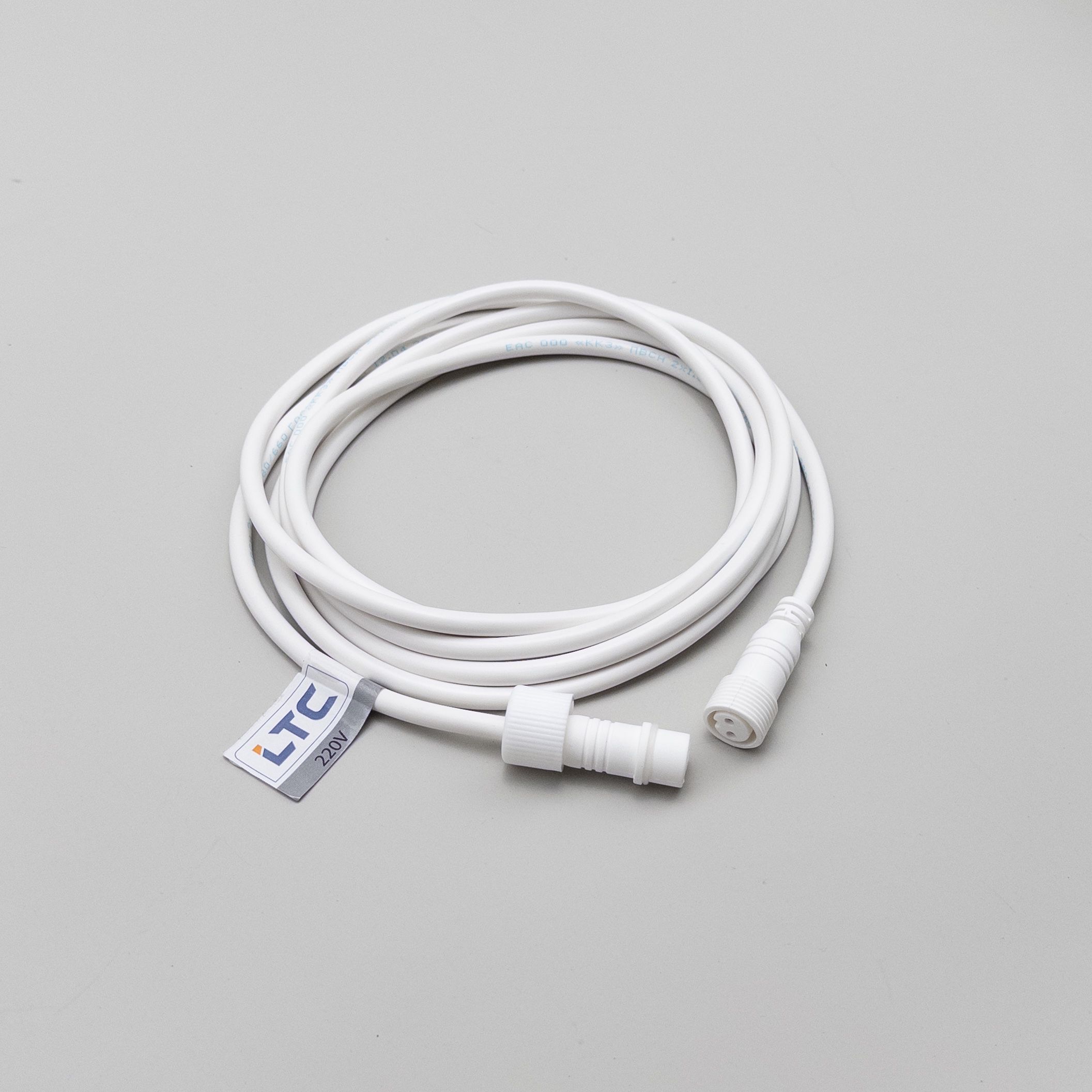 Соединитель 3м для Бахромы, Занавесов и Нитей 220В, Провод Белый Каучук, IP65 LTC LLS-8-3M в Томск