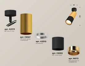Комплект накладного светильника Ambrella light Techno Spot XM6327020 PYG/SBK золото желтое полированное/черный песок (A2210, C6327, N6111)