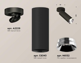 Комплект накладного светильника Ambrella light Techno Spot XM6323003 SBK/PSL черный песок/серебро полированное (A2210, C6323, N6112)