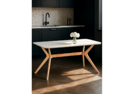 Керамический стол Woodville Unika 180x80 белый спеченный камень / светлое дерево 15920