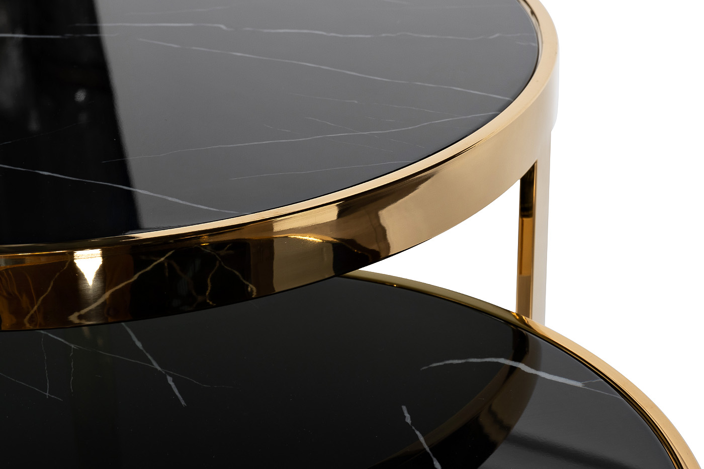 абор журнальных столиков, которые эффектно смотрятся в интерьере и идеально дополняют друг друга. Парный дизайн позволяет экономить пространство и расширяет возможности эксплуатации столов – они одинаково стильно смотрятся как вместе, так и по отдельности, в разных уголках комнаты. Два журнальных столика – близнецы с отличием в размерах. В остальном - основа из нержавеющей стали, столешница из закаленного стекла, цветовая палитра и дизайн – все идентично. В этом и состоит особая прелесть данной мебели. Этот золотой журнальный столик станет главным украшением вашего интерьера. Толщина столешниц - 8мм.