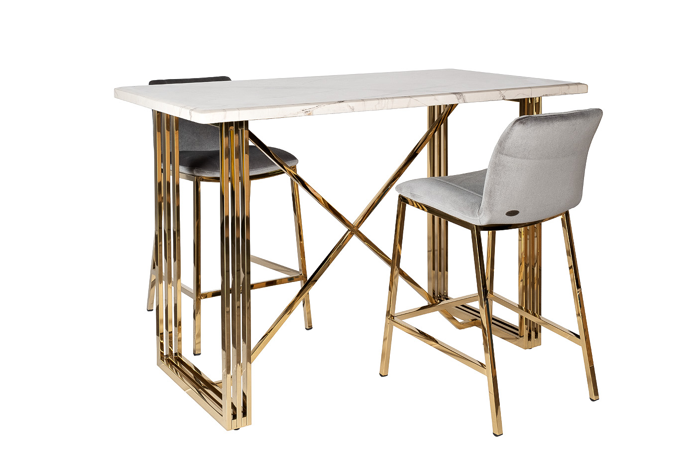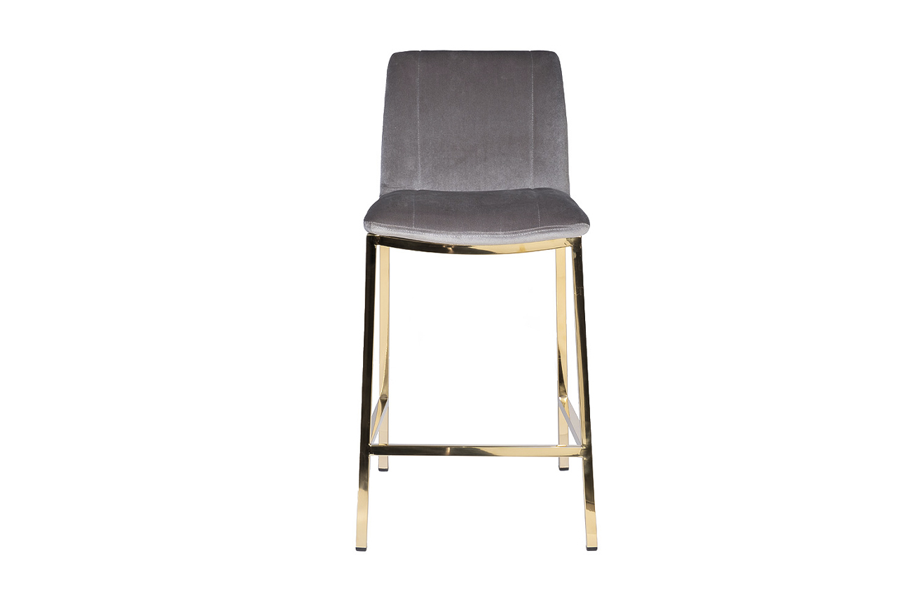 Удобный барный стул из сергого велюра на позолоченном основании из нержавеющей стали. Серый велюровый барный стул – стильный и элегантный в своем дизайне. Его сложно назвать универсальным, поскольку красота этой модели предъявляет высокие требования к общей обстановке кухни, бара, ресторана. Барный стул со спинкой воплощает в себе повышенный комфорт и способен занять центральное место в интерьере. Обивка из тактильно приятного велюра и ножки из позолоченного металла делают эту модель весьма заметной и привлекательной. Предлагаем купить дизайнерский барный стул для кухни и дополнить его высоким столом 30F-1388 или другой мебелью из нашего каталога. Габариты сиденья: ширина 42см, глубина 38см, высота от пола 65см.