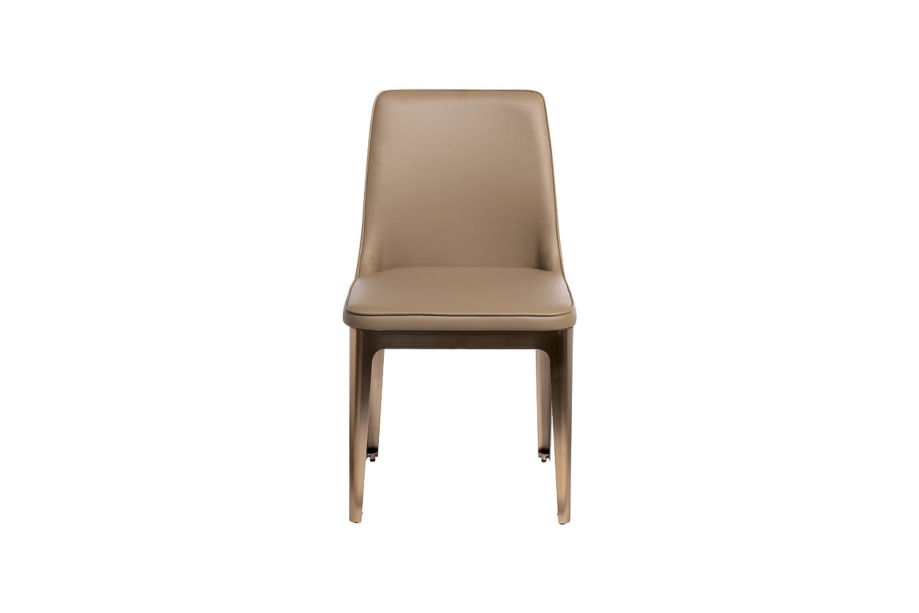 Обеденные стулья из бежевой экокожи от бельгийского дизайнера Тома Де Вульфа подходят к любым столам в современном стиле, выполненным в светлых тонах. Стулья также идеально вписываются в коллекцию Space. Шелковистый блеск зашлифованной стали под бронзу и...