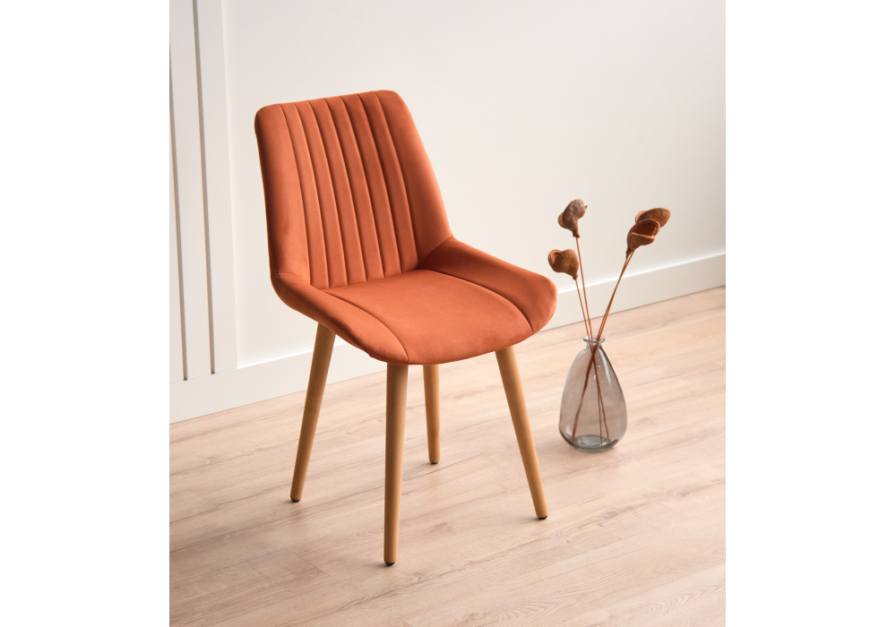 Материал каркаса - дерево; Материал сиденья - велюр; Материал обивки - велюр; Цвет ножек - натуральный; Ширина - 50; Глубина - 56; Высота - 82; Ширина сиденья - 47; Глубина сиденья - 42; Высота сиденья - 48;