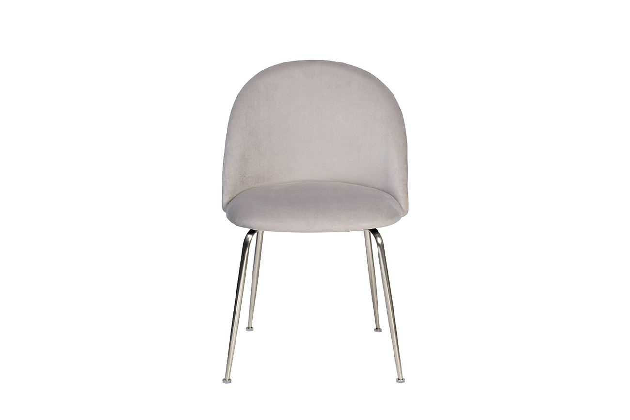 Дизайнерский велюровый серый стул – практичная универсальная мебель, которой найдется место в любом жилом и бизнес-интерьере: столовая, кухня, кабинет, приемная, ресторан. Деревянный каркас и ножки из металла обеспечивают высокую надежность и устойчивость модели. Мягкий наполнитель из пенополиуретана и обивка из высококачественного велюра гарантируют максимально комфортную посадку. Простой эргономичный стул с хромированными ножками и полукруглой спинкой легко впишется в любой современный интерьер. Garda Decor предлагает заказать стулья для кухни с металлическими ножками, а также стол и другую мебель в аналогичном стиле для создания единого обеденного ансамбля. Наполнитель пенополиуретан. Размер сиденья: Г43*Ш45*В47см.