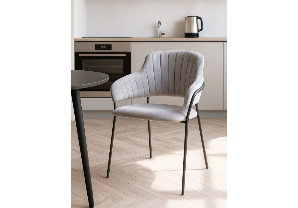 Высота подлокотников: 65 см. Материал каркаса - металл; Материал сиденья - велюр; Материал обивки - велюр; Ширина - 57; Глубина - 56; Высота - 82; Ширина сиденья - 48; Глубина сиденья - 47; Высота сиденья - 49;