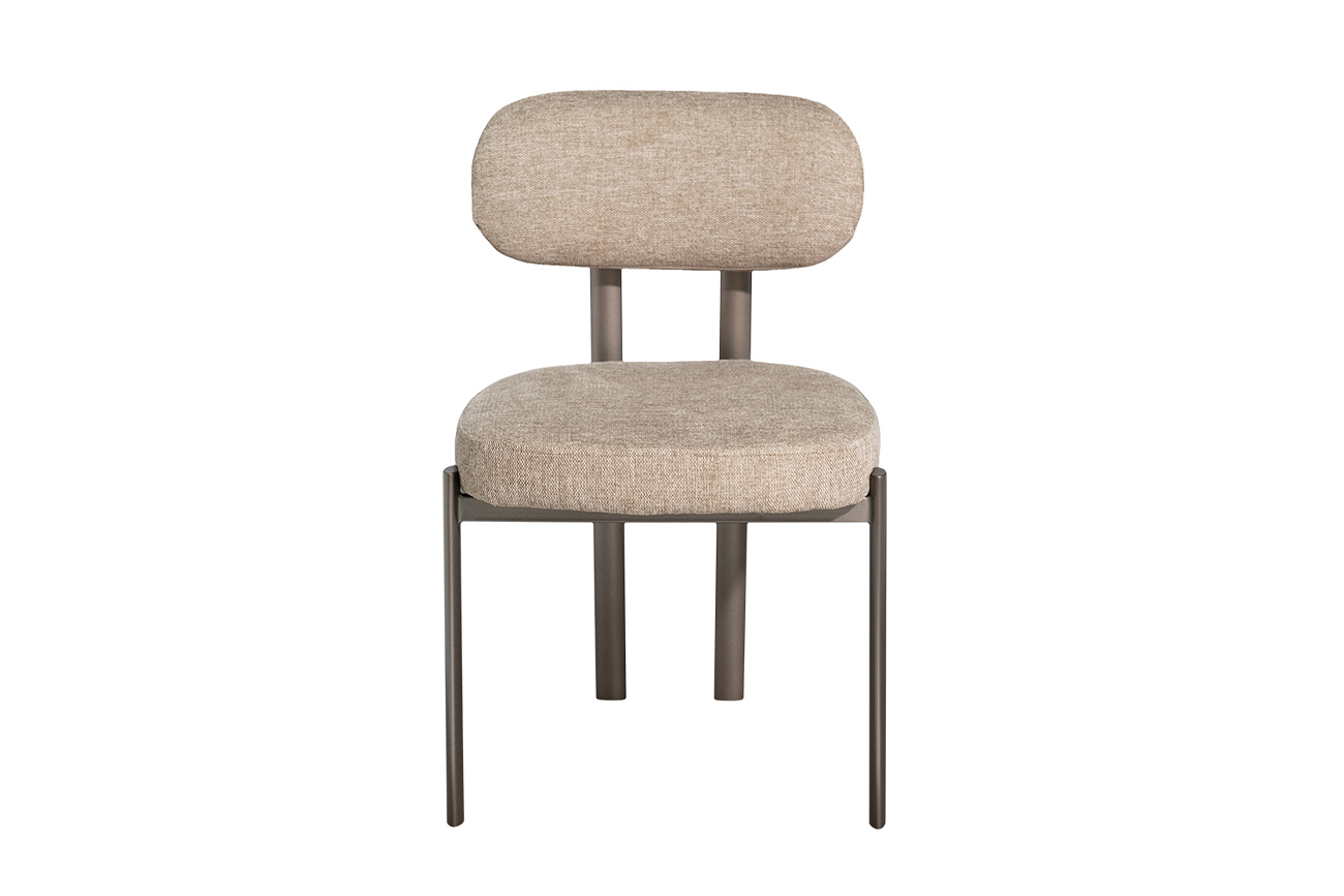 Обеденный стул в бежевом шенилле — сдержанная роскошь для тех, кто ценит текстуру и форму. Его лаконичный силуэт с округлой спинкой и мягким сиденьем сочетает эргономику с архитектурной чёткостью: каждая линия продумана, чтобы не нарушать гармонию пространства, но подчёркивать его. Обивка из шенилла бежевого оттенка — это не просто ткань, а тактильное удовольствие: мягкая, слегка пушистая, с глубоким фактурным рисунком, она переливается при свете, добавляя интерьеру утончённости. Металлический каркас матового серо-коричневого цвета создаёт контраст — холодный, но благородный, как будто вырезанный из современной скульптуры. Идеален для кухни или столовой в стиле неоклассика, ар-деко или фьюжн — где важна дизайнерская мебель, сочетающая эстетику и практичность. Это не просто обеденный стул, а элемент, способный задать тон всему помещению — незаметно, но уверенно. Габариты сиденья: ширина 48см, глубина 50см, высота от пола 48,5см.